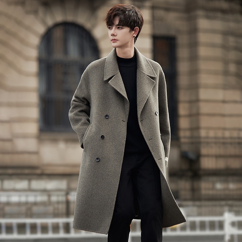 boy Boy Boy 2025 Autumn Winter New Men Mid-Length Over-the-Knee Sheep Wool Woolen Trench Coat Korean Style Trendy