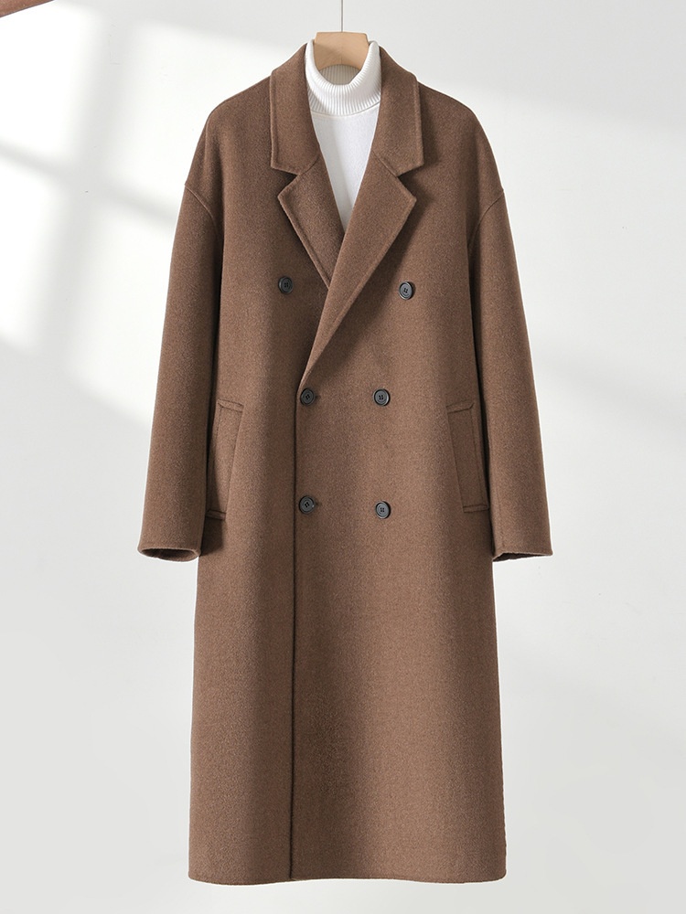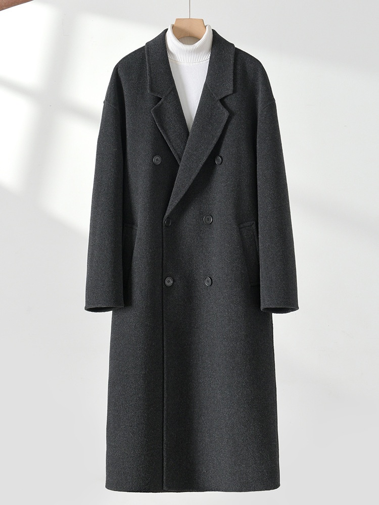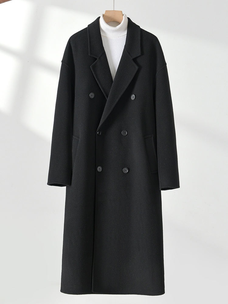 boy Boy Boy Autumn Winter Double-Sided Sheep Wool Men Long Over-the-Knee Double-Breasted Loose Korean Style Woolen Trench Coat