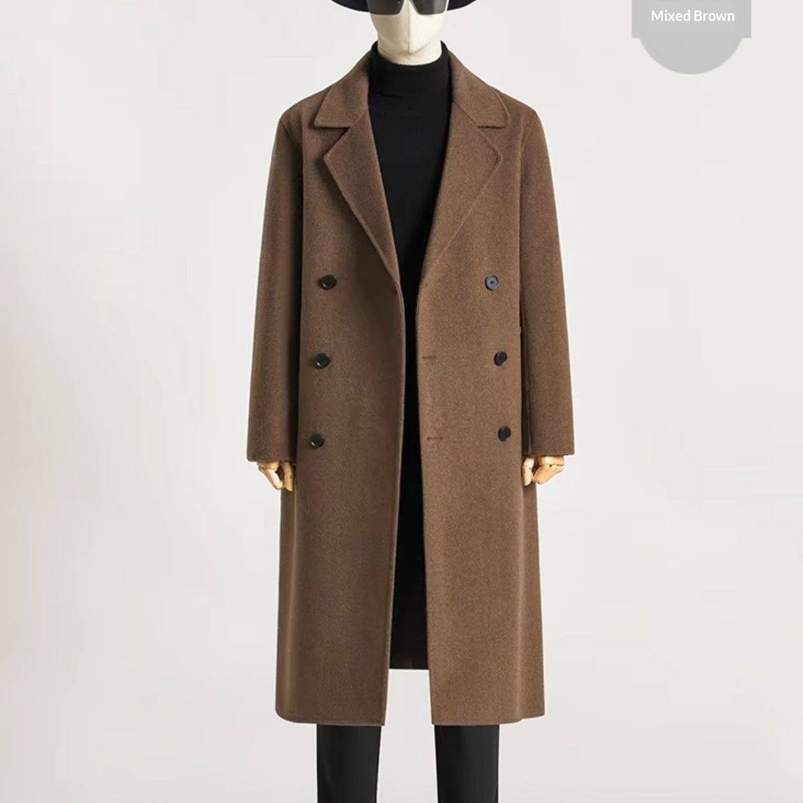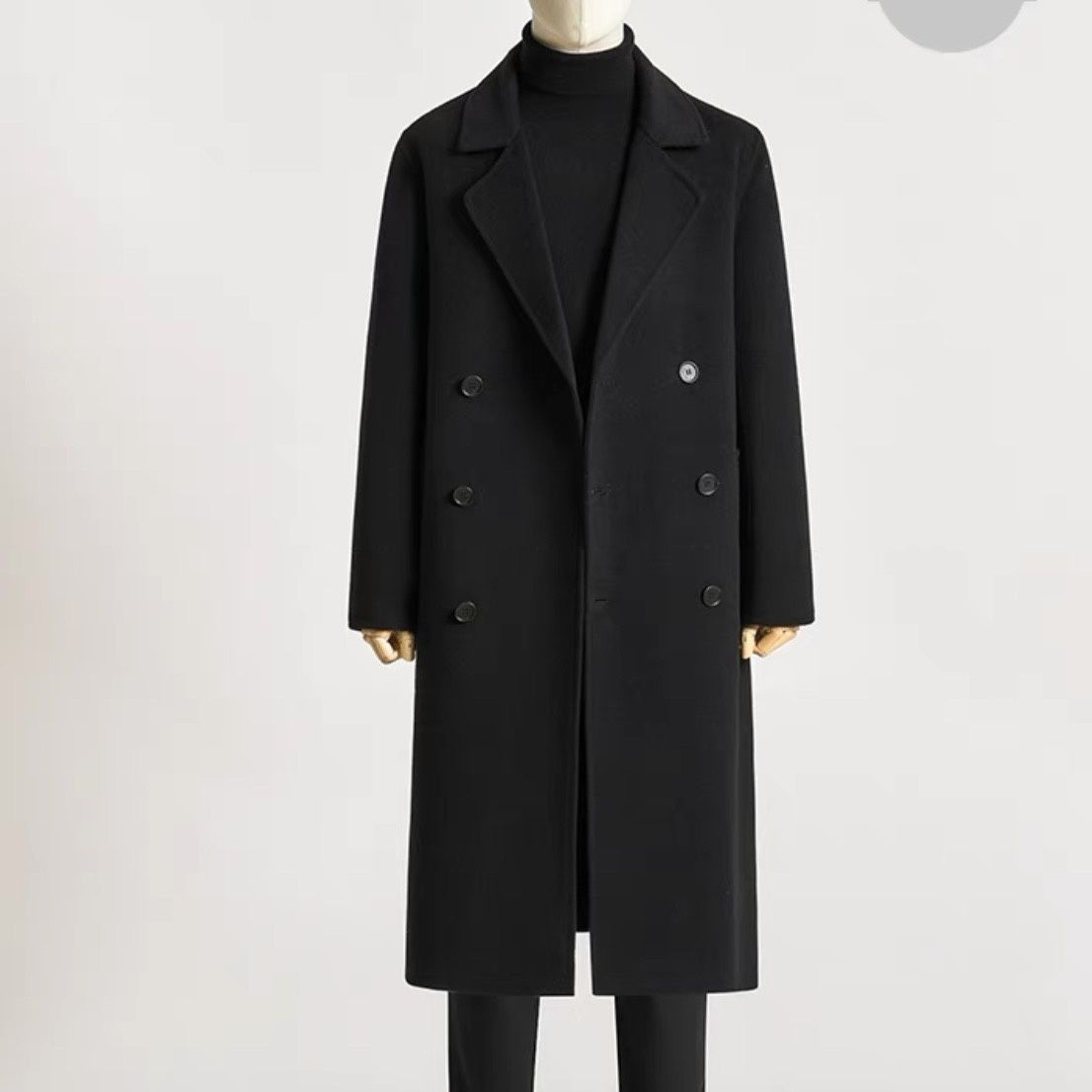 boy Boy Boy Autumn Winter Long Over-the-Knee Double-Sided Men Double-Breasted Korean Style Loose Woolen Trench Coat Black