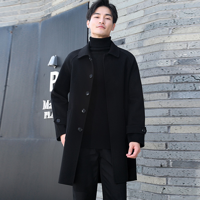 boy Boy Boy Autumn Winter New Pure Men's Loose Double-Sided Woolen Trench Coat Mid-Length Wool Korean Style Casual