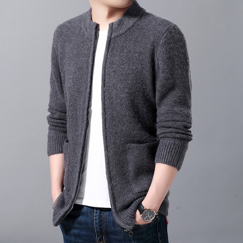 Product Source Category:In Stock,Material function:other,Item Number:1615,Brand:Independent Brand,Design 1:Cardigan,Design:Loose Fit,Collar Style:Stand Collar,Sleeve Length:Long Sleeve,Thickness:Thickened,Style:Korean Style,Design details:Cardigan,Bargain Category:Business gentleman over 35 years old,Is it in stock?:No,Suitable for everyone:Middle-aged,Year/Season of Release:Autumn 2020,Fabric Name:Synthetic Blend Fabric,Main fabric composition:Viscose,Content of the main fabric components:65,Applicable Scenarios:Casual,Suitable for the season:Winter,Applicable to the target audience:Middle-aged,Color:Black 1615, Camel 1615, Gray 1615, Gray 1616, Camel 1616, Black 1616,Size:165/ M, 170/ L, 175/ XL, 180/ 2XL, 185/ 3XL, 190/ 4XL,Is it exclusively for cross-border export supply?:No,Original Design Source:yes,Is there a quality inspection report?:No,Suitable age group:adult,Applicable Gender:Male,Product Category:Knit Sweater
