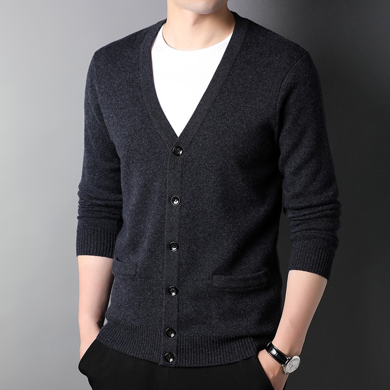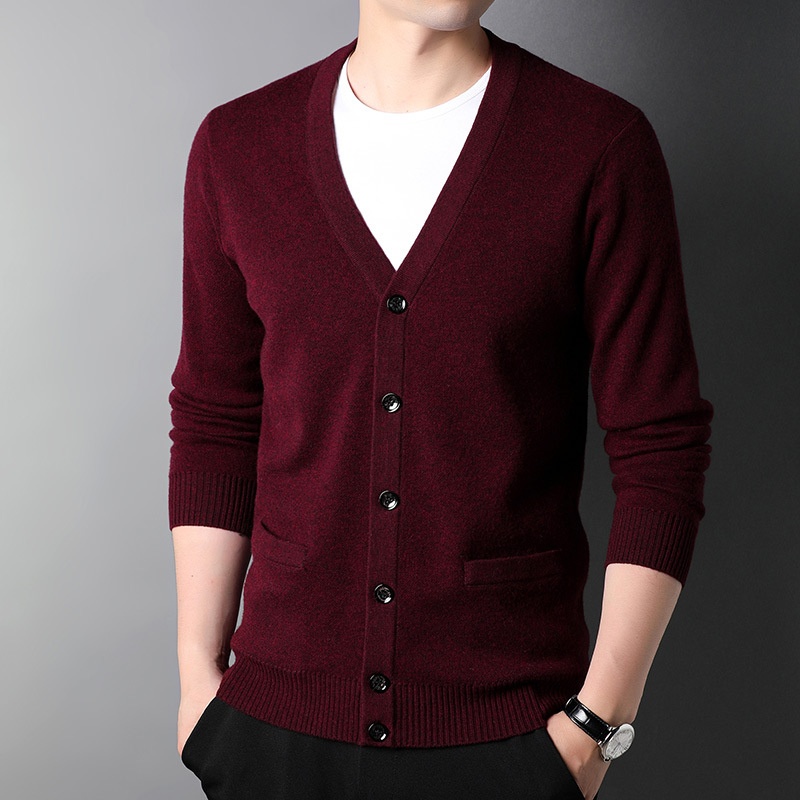 Product Source Category:In Stock,Item Number:664120980410,Design 1:Cardigan,Design:Form-fitting,Collar Style:V-neckline,Sleeve Length:Long Sleeve,Thickness of Yarn:Ordinary Yarn,Thickness:Thickened,Length of clothing:Regular Style 50cm<Length≤65cm,Style:Basic Popular,Design details:Ribbed Hem,Bargain Category:Business gentleman over 35 years old,Is it in stock?:No,Suitable for everyone:Youth,Year/Season of Release:Spring 2022,Wool Type:Wool,Percent fiber content:100%,Other fabric components:Wool,Applicable Scenarios:Casual,Suitable for the season:Spring and Autumn Season,Applicable to the target audience:Youth,Color:Medium Gray, Dark Gray, Medium Brown, Navy Blue, Deep Red,Size:M/165,L/170,XL/175,XXL/180,XXXL/185,XXXXL/190,Craftsmanship:None,Is it exclusively for cross-border export supply?:No,Sleeve Style:Regular,Original Design Source:yes,Is there a quality inspection report?:No,Suitable age group:adult,Applicable Gender:Male,Product Category:Sweater