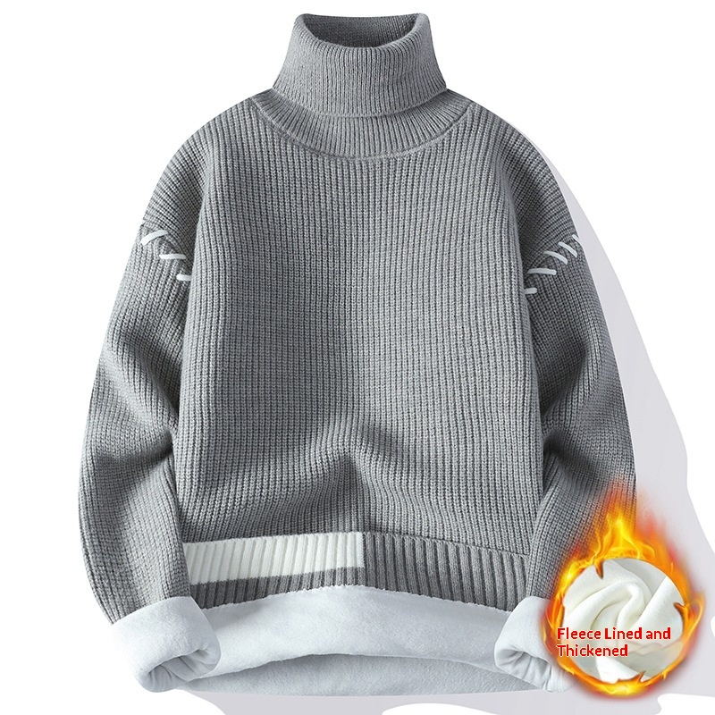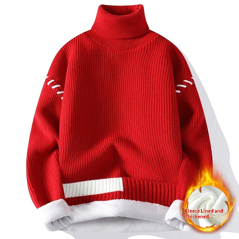 boy Boy Boy Boy Fleece-Lined Thickened Sweater Men, Autumn And Winter New Warm High-Neck Knitwear For Teenagers, Base Layer Student Knit