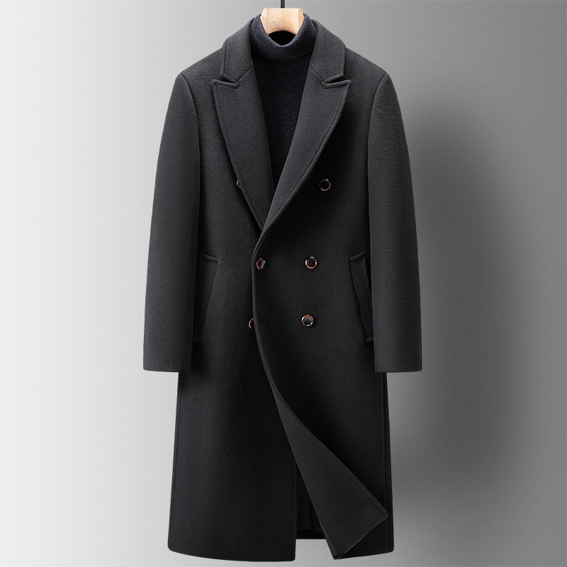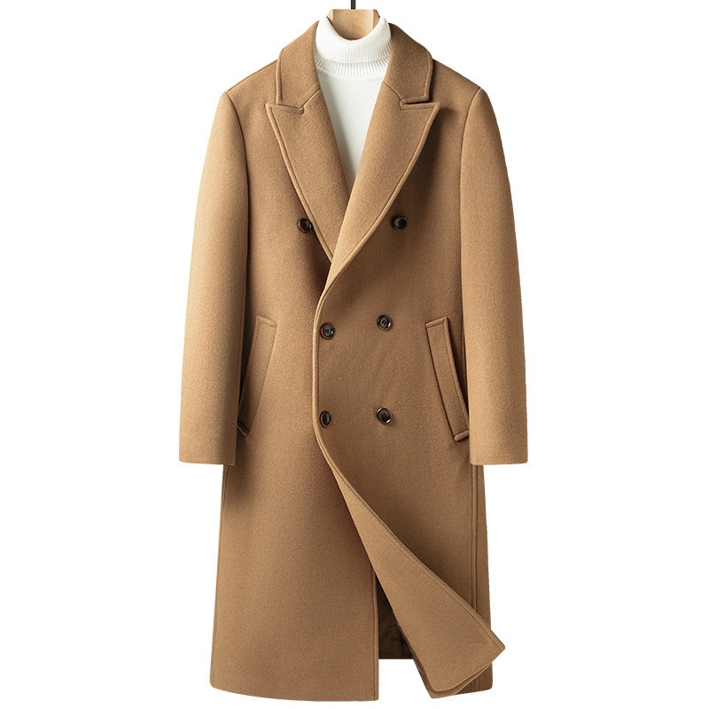 boy Boy Boy Cross-Border Autumn Winter New Double-Breasted Over-the-Knee Long Men's Thickened Wool Trench Coat Woolen Jacket