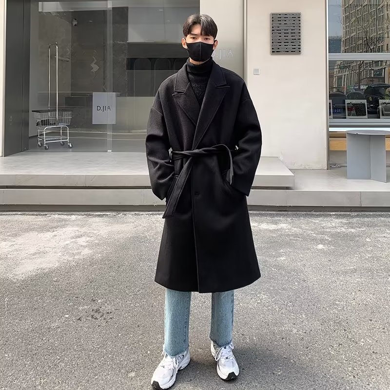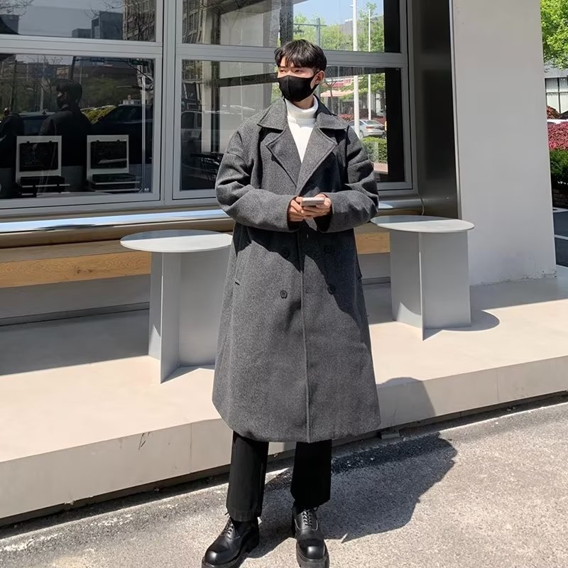 boy Boy Boy Double-Breasted Wool Coat For Men, Mid-Length Over-the-Knee Woolen Trench Coat, Autumn And Winter Korean Style, High-End