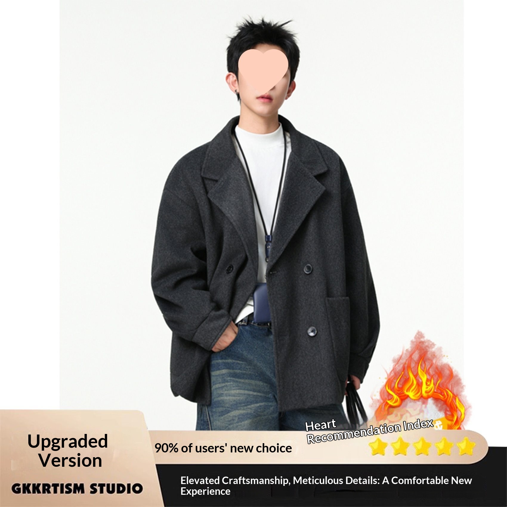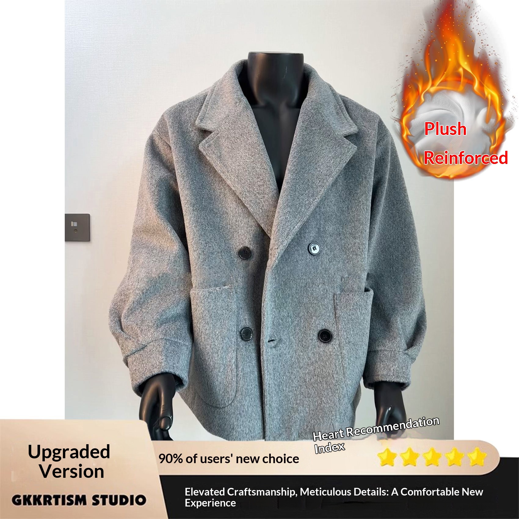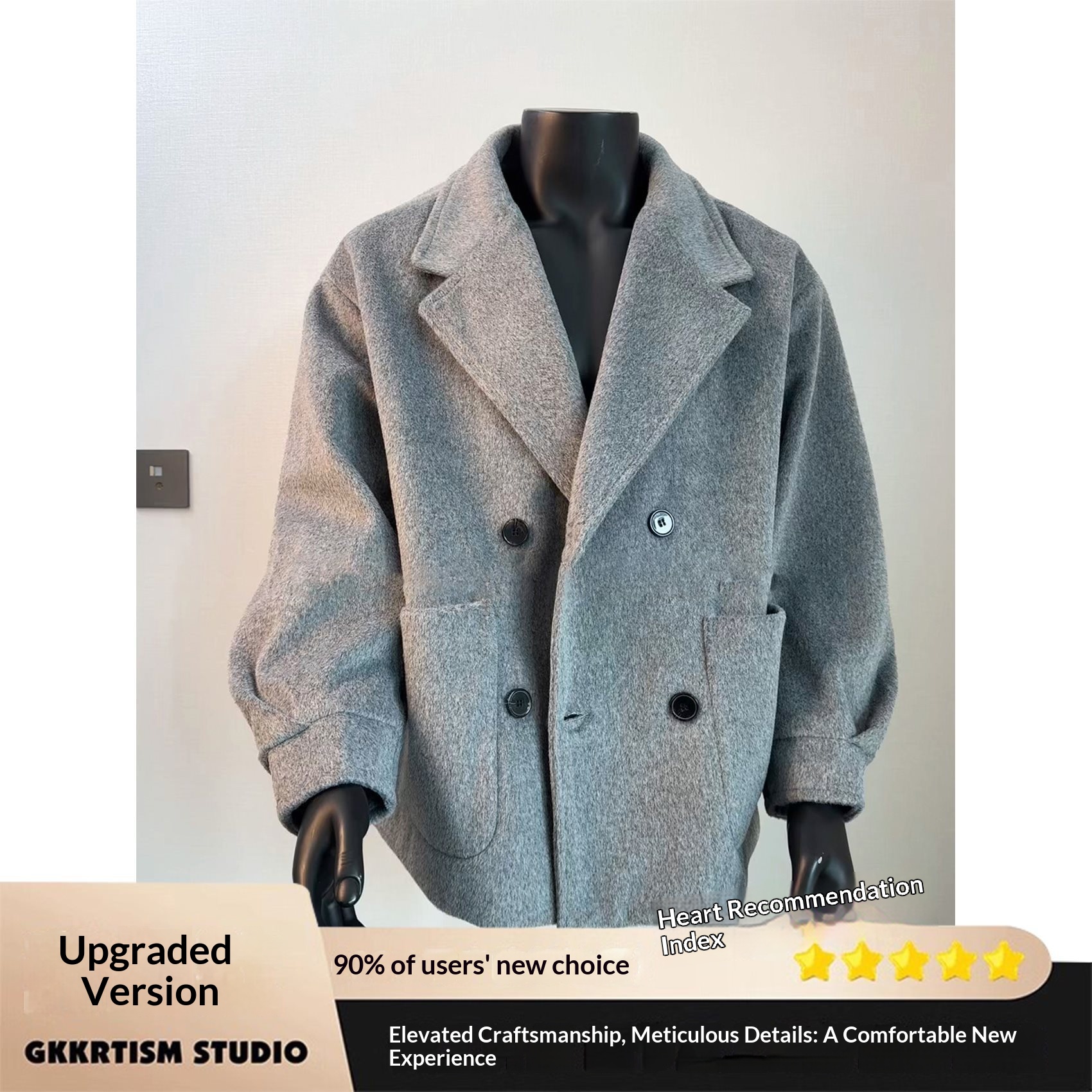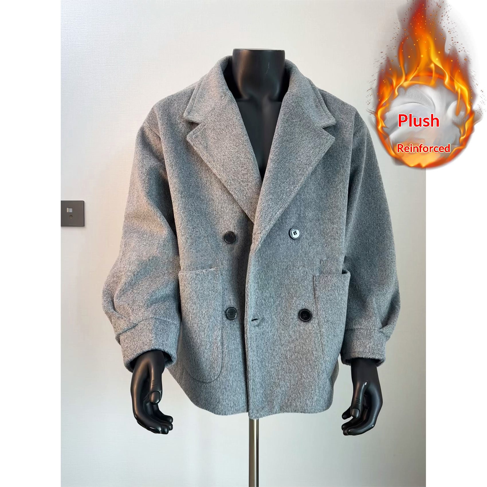boy Boy Boy Gray Alpaca Wool For Men, Autumn And Winter Double-Breasted Short Blazer, Thickened Warm Woolen Trench Coat