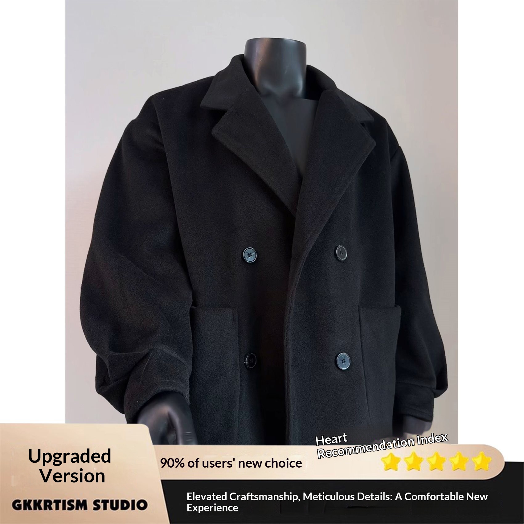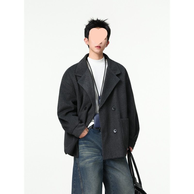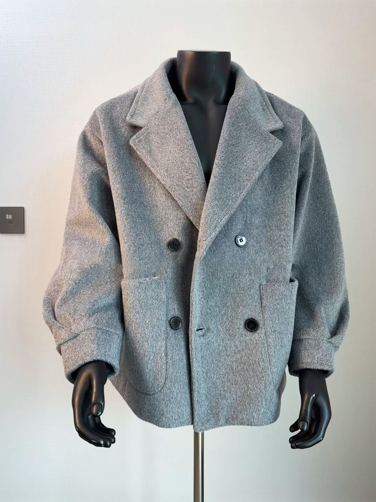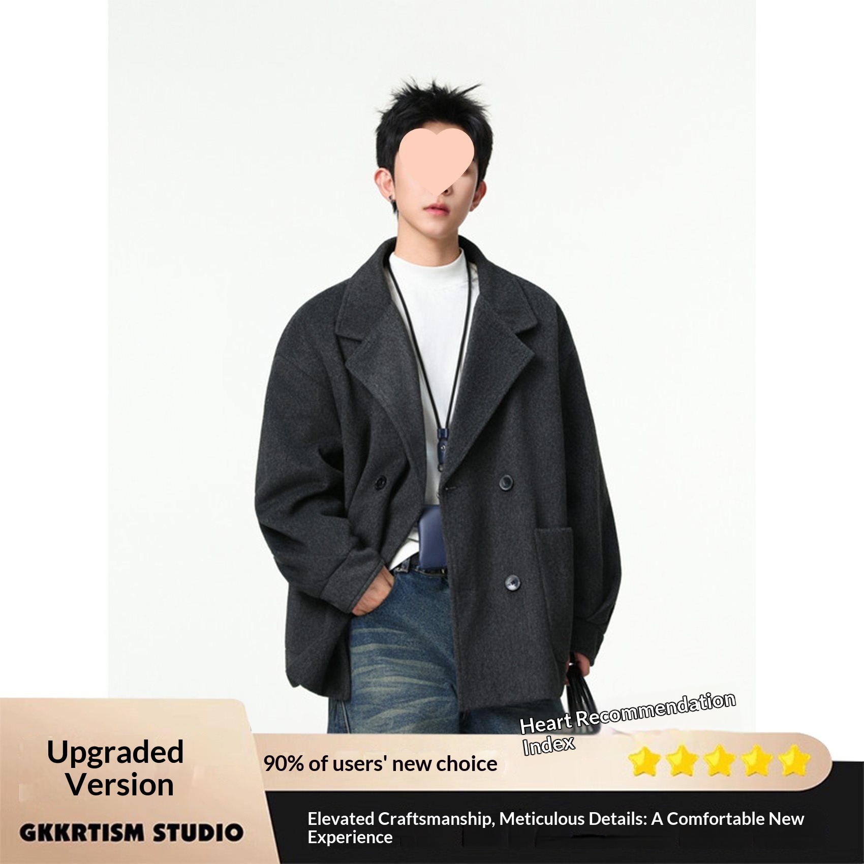 boy Boy Boy Gray Alpaca Wool For Men, Autumn And Winter Double-Breasted Short Blazer, Thickened Warm Woolen Trench Coat