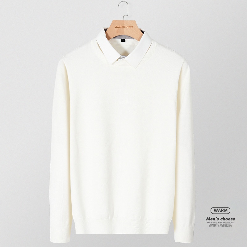 boy Boy Boy Two-Piece Kitted Autum Witer Custom Prited Shirt Collar Me's Ier Wear High-Ed Feel Top Base Sweater