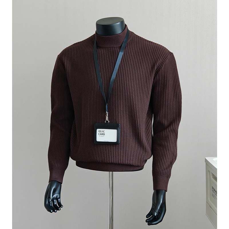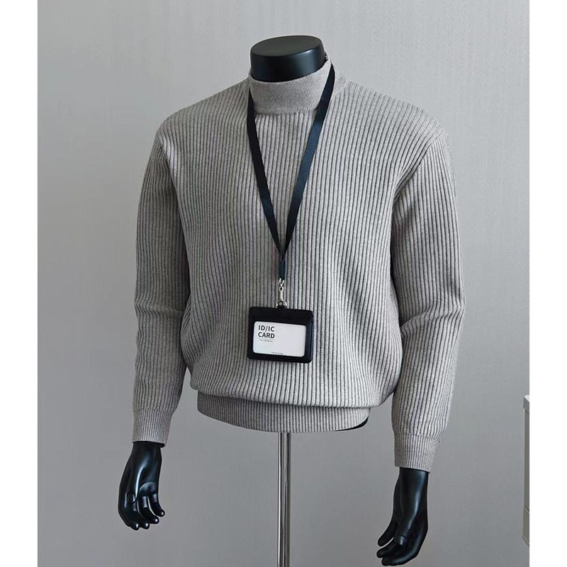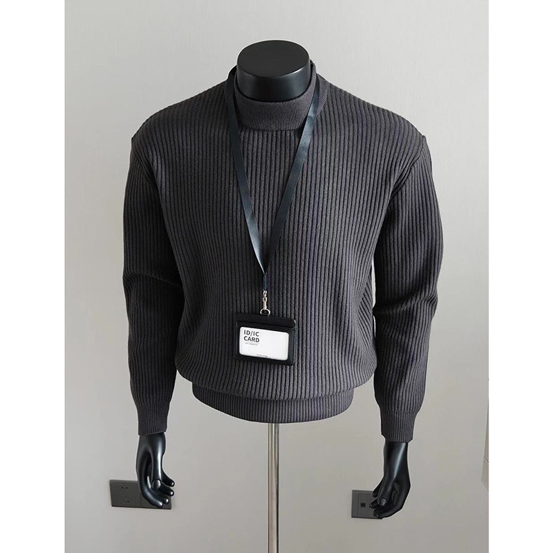 boy Boy Boy White Ribbed Half Turtleneck Sweater For Men, Autumn Winter, Lazy High-End Feel, Cleanfit American Style, Regular