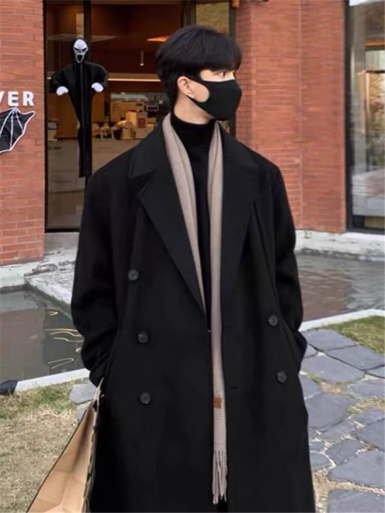 boy Boy Boy Winter Wool Coat For Men, Hong Kong Style, Mid-Length, Over-the-Knee, Thickened, Loose Fit, High-End Woolen Trench Coat,