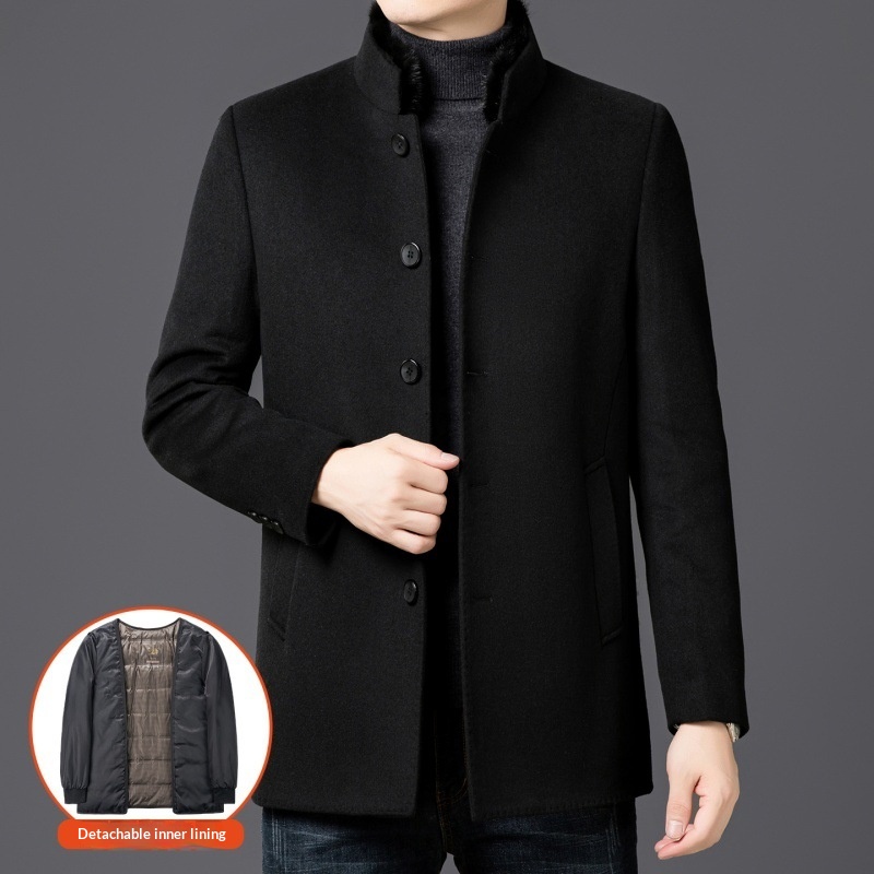boy Boy Men's Wool Coa For Auumn And Winer, Business Casual, Middle-aged Dad, Wrinkle-Free, Warm, Down, Mink Fur Collar