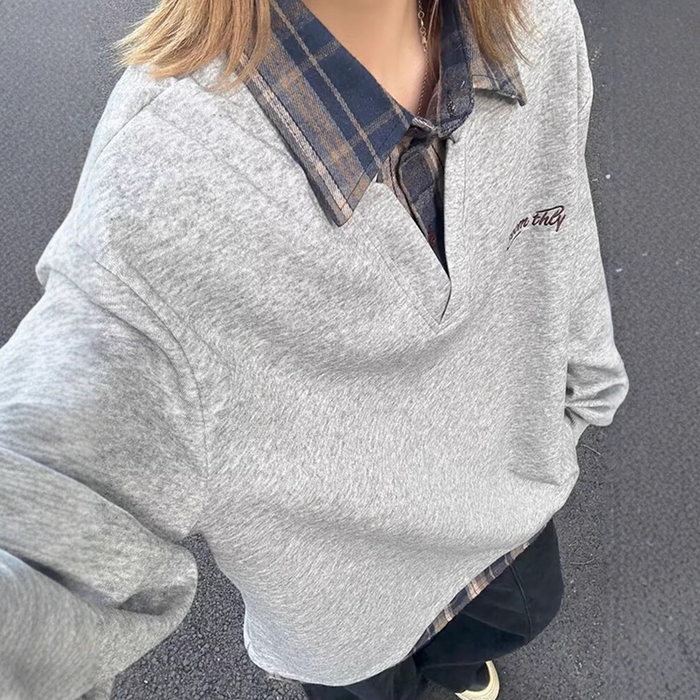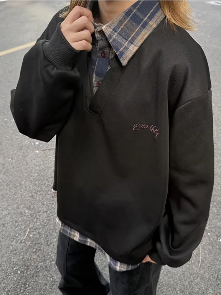 boy Boy Two-Piece Double-Layer Collar Embroidered Sweatshirt For Men Spring And Autumn Couple Long Sleeve Top American