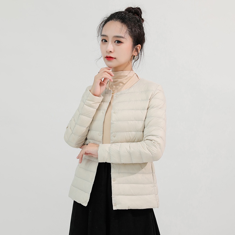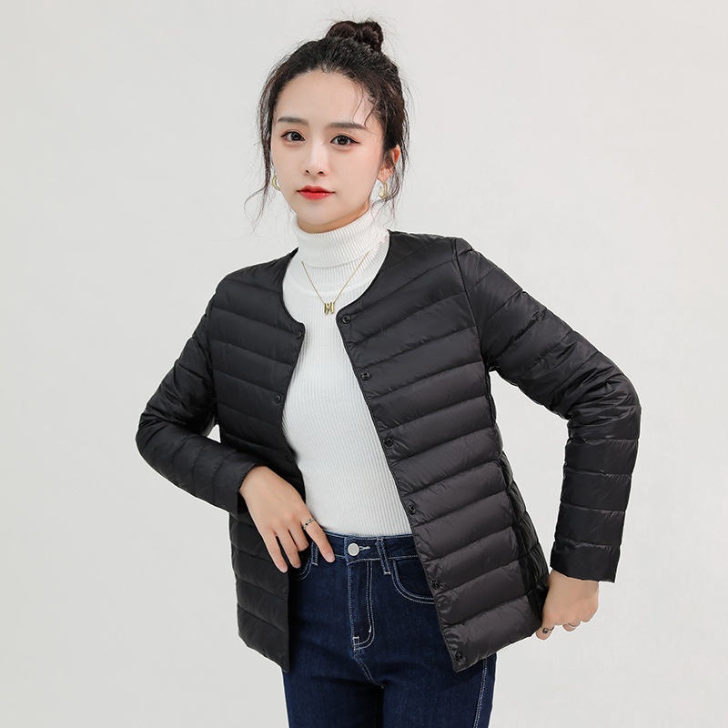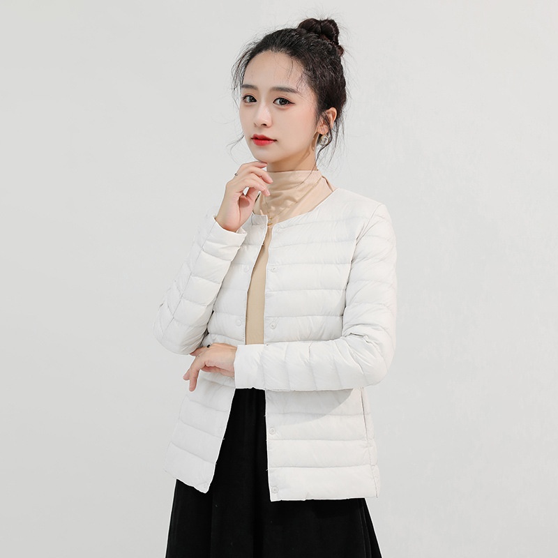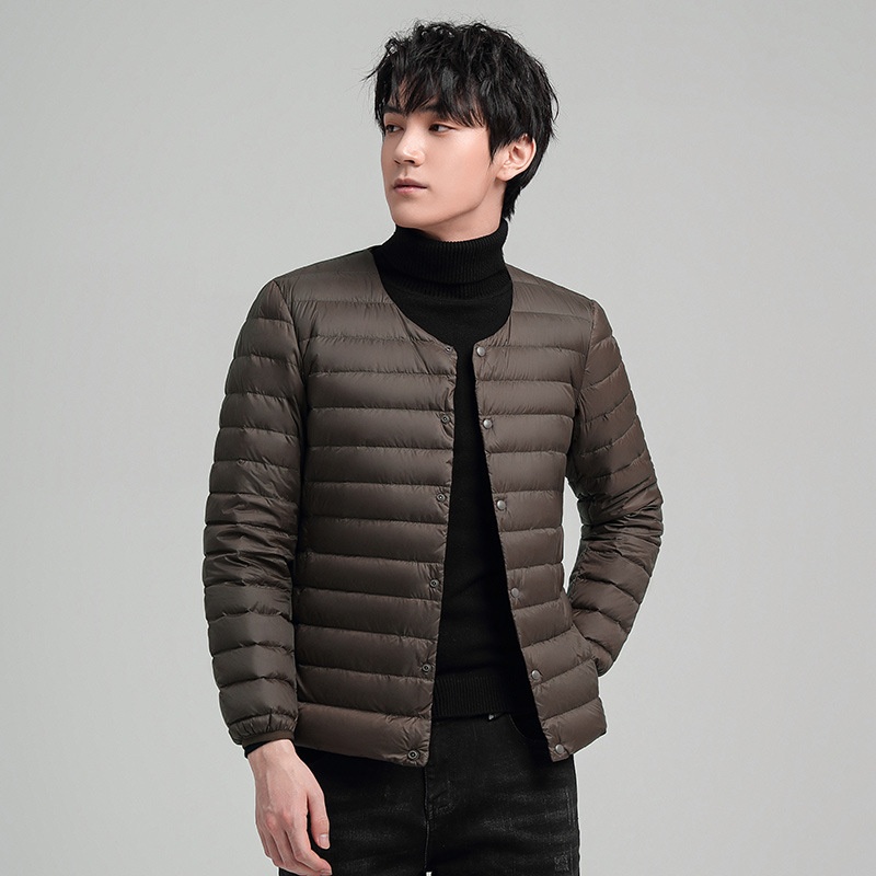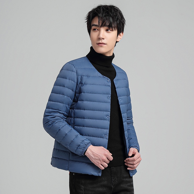 boy Lightweight Jacket Men's Short Style Autumn Winter New Collarless Liner Plus Size Inner Wear Base Layer Round Neck White