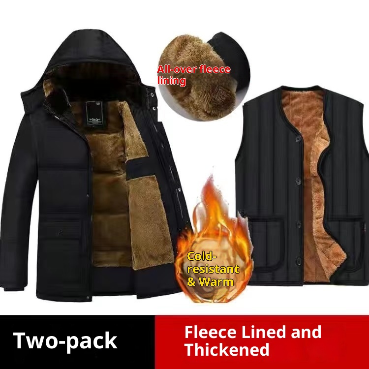Cold-resistant Level:Mild Cold Level -5℃~-0℃,Material function:Machine washable,Fluffiness:550,Product Source Category:In Stock,Brand:other,Item Number:other,filling material:White Duck Down,Fleece Content:71%~75%,Design 1:Basic style,Design:Form-fitting,Length of clothing:Extended Length 100cm<Clothing Length,Collar Style:Stand Collar,Is it hooded or not?:Hooded,Front placket:Zipper,Thickness:Thickened,Pattern:Solid Color,Style:Business Casual,Bargain Category:other,Error margin:other,Is it in stock?:No,Down Fill Power:200g included - 250g excluded,Suitable for everyone:Middle-aged,Lining Composition:Fleece-lined,Lining Material Composition Content:other,Fabric Name:Corduroy,Main fabric composition:Polypropylene,Content of the main fabric components:other,Applicable Scenarios:Everyday,Color:Black 999, Black Cotton Jacket + Cotton Pants 999, Black Cotton Jacket + Vest 999, 999 Three-Piece Set Cotton Jacket Vest Pants,Size:M,L,XL,2XL,3XL,4XL,5XL,Suitable for the season:Winter,Year/Season of Release:Autumn 2023,Functionality:other,Craftsmanship:other,Design details:Multi-pocket,Is it exclusively for cross-border export supply?:No,Quality Inspection Report Number:other,Original Design Source:No,Is there a quality inspection report?:No,Suitable age group:adult,Applicable Gender:Male,Product Category:Down Jacket