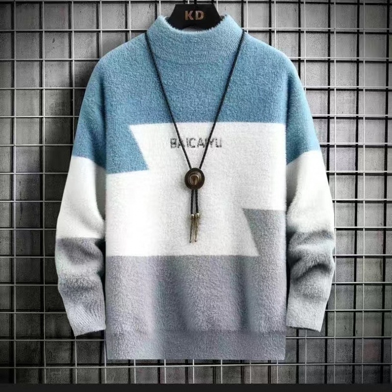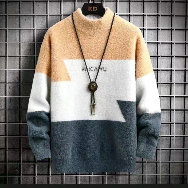 Product Source Category:In Stock,Material function:other,Item Number:mTBd6yzT,Brand:other,Design 1:Pullover,Design:Bat-shaped,Collar Style:Mock Neck,Sleeve Length:Long Sleeve,Thickness:Average,Style:Trendy Youth Fashion,Design details:Jacquard Pattern,Bargain Category:other,Suitable for everyone:Youth,Year/Season of Release:Winter 2022,Fabric Name:Mink Cashmere,Main fabric composition:Mink fur,Content of the main fabric components:Other/Mink Fur%,Suitable for the season:Winter,Applicable to the target audience:Youth,Color:1529 +White Mink Velvet Sweater,1529 +Blue Mink Velvet Sweater,1529 +Yellow Mink Velvet Sweater,Size:M,L,XL,2XL,3XL,Craftsmanship:Jacquard Pattern,Main downstream platforms:other,Main sales regions:other,Is it exclusively for cross-border export supply?:yes,Original Design Source:yes,Is there a quality inspection report?:No,Quality Inspection Report Number:other,Suitable age group:adult,Applicable Gender:Male,Receive the Label:No Collar Label,Product Category:Knit Sweater,What is the source type?:Guangzhou Thirteen Factories,Hang Tag:With tags