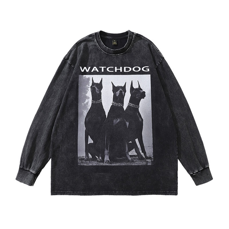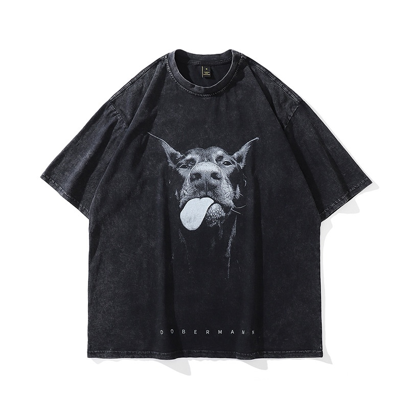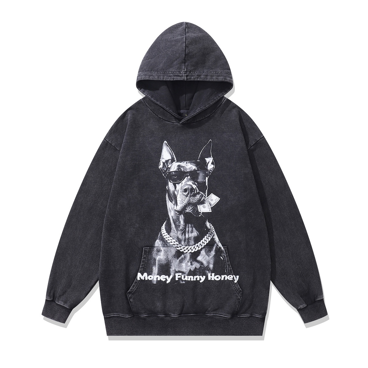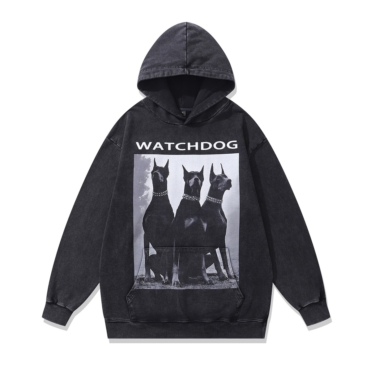 boy TKPA European And American High Street Dark Style Doberman Print Heavyweight Hip Hop Vintage Hoodie For Men