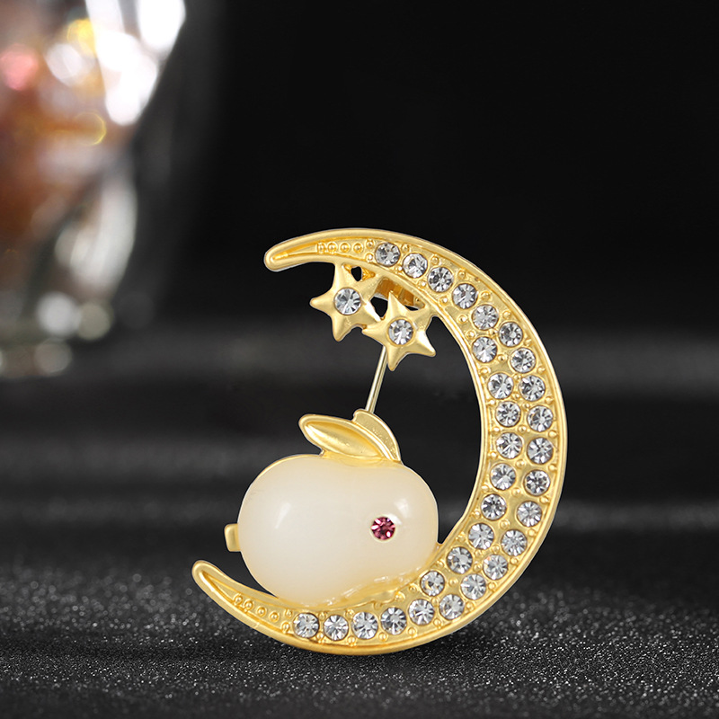Brooch women moon rabbit brooch wholesale high end anti exposure pin buckle suit fixed clothing accessories collar pin