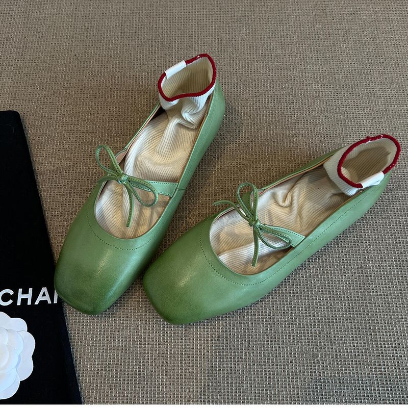 Sheepskin version~Candy color simple flat bottomed Mary Jane women's French one-piece strap light mouth versatile ballet single shoe