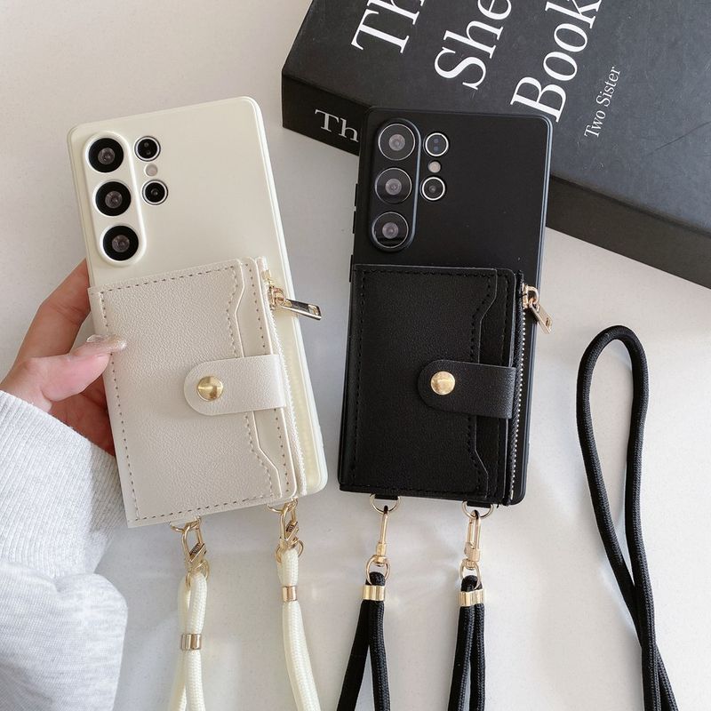 Card Holder Wallet Phone Case For Samsung Galaxy S25 S24 S23 Plus S22 Ultra S21 S20 FE Lanyard Strap Cord Crossbody Bag Cover