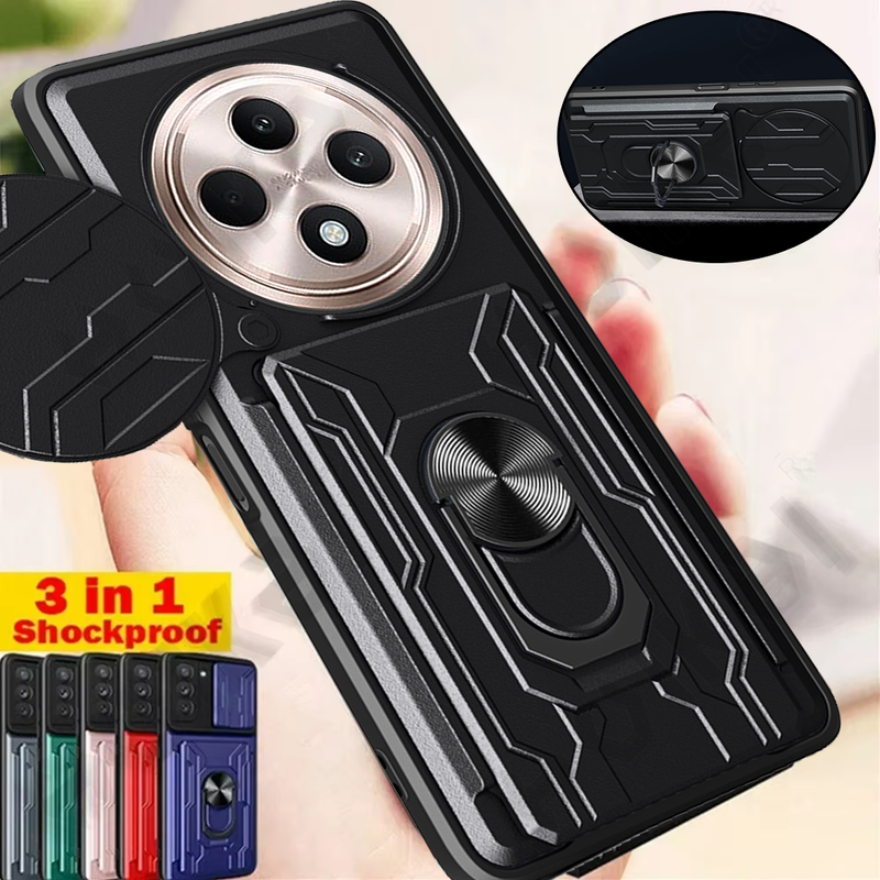 Case For OPPO Reno 12 12F 11 4G 5G Realme 13 Pro Plus Card Holder Slide Camera Ring Stand Armor Kickstand Cover_voghion.com