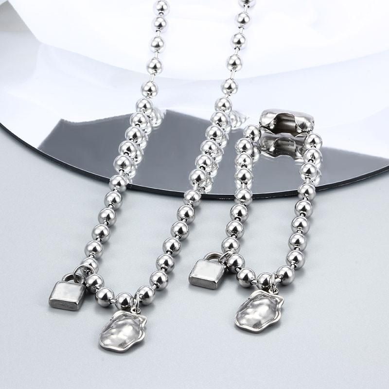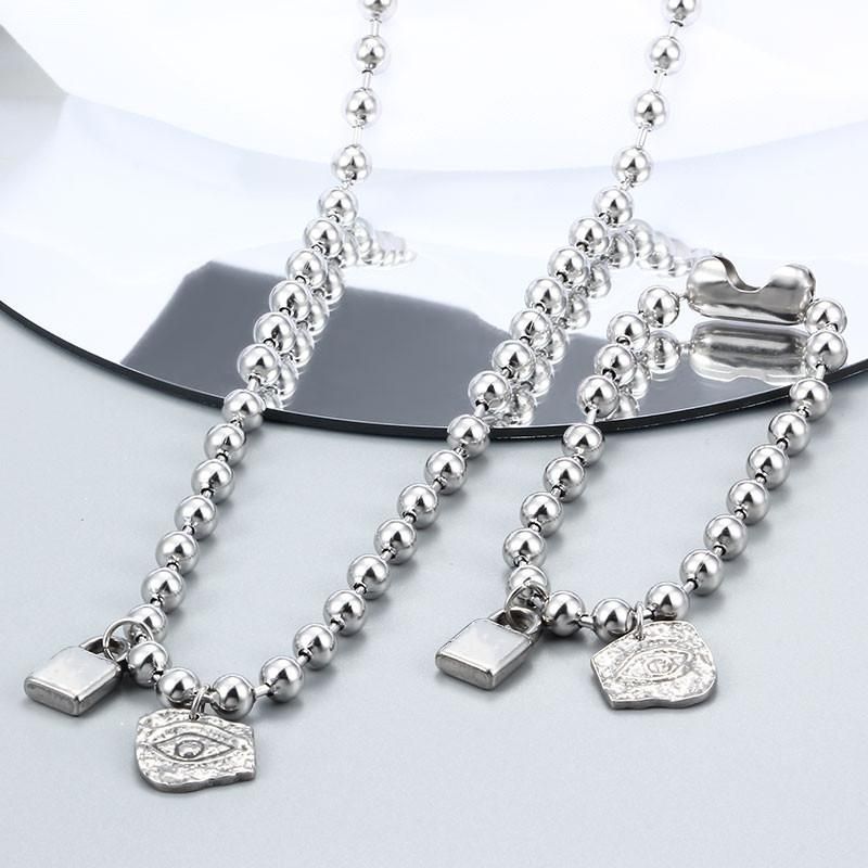 Chains Fashion Sier Stainless Steel Color Gift Round White Ball Women Men Lock Key UN 50 8mm Bead Pendants Neckalce