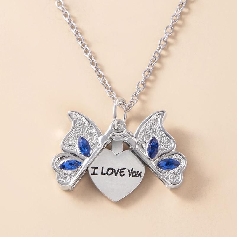 I Love You Engraved Necklace Inspirational Butterfly Locket Necklace Jewelry Gift For Women Girlfriend