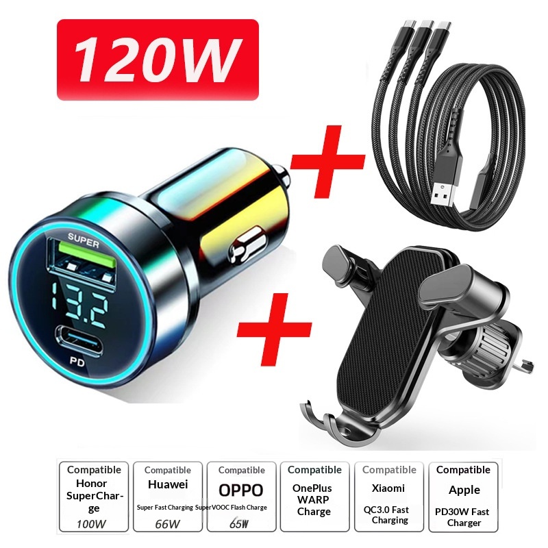 Charger Super Fast One-to-Two Cigarette Lighter USB Adapter Multi-Function Car Phone Flash Charging