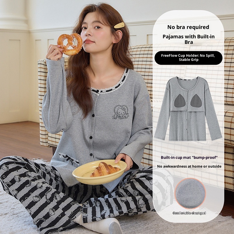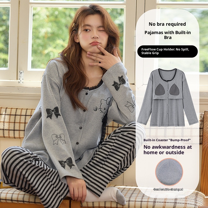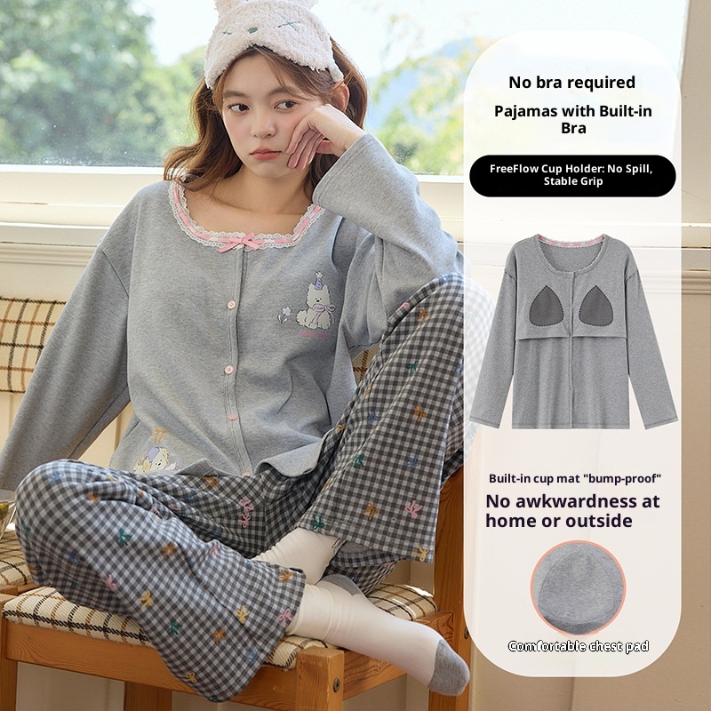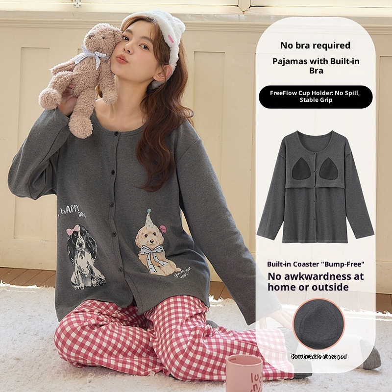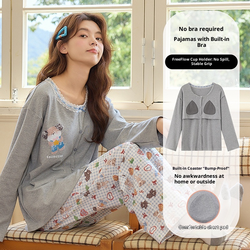 ChicShe Autumn Winter Pajamas For Women 2025 Pure Cotton Cardigan Long Sleeve Set With Chest Pads, Simple Loose Homewear