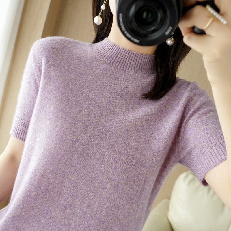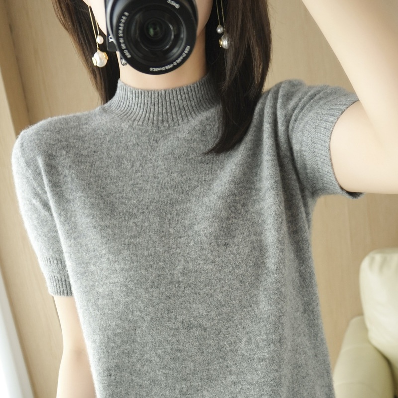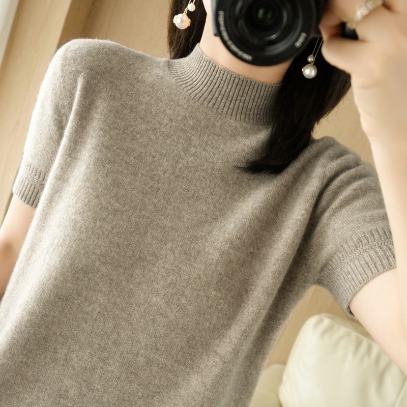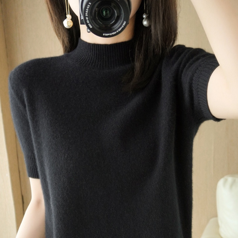 ChicShe ChicShe Spring And Autumn Turtleneck Women's Base Shirt Loose Wool Blend Short Inner Wear Half Sleeve Knitted Thin Sweater