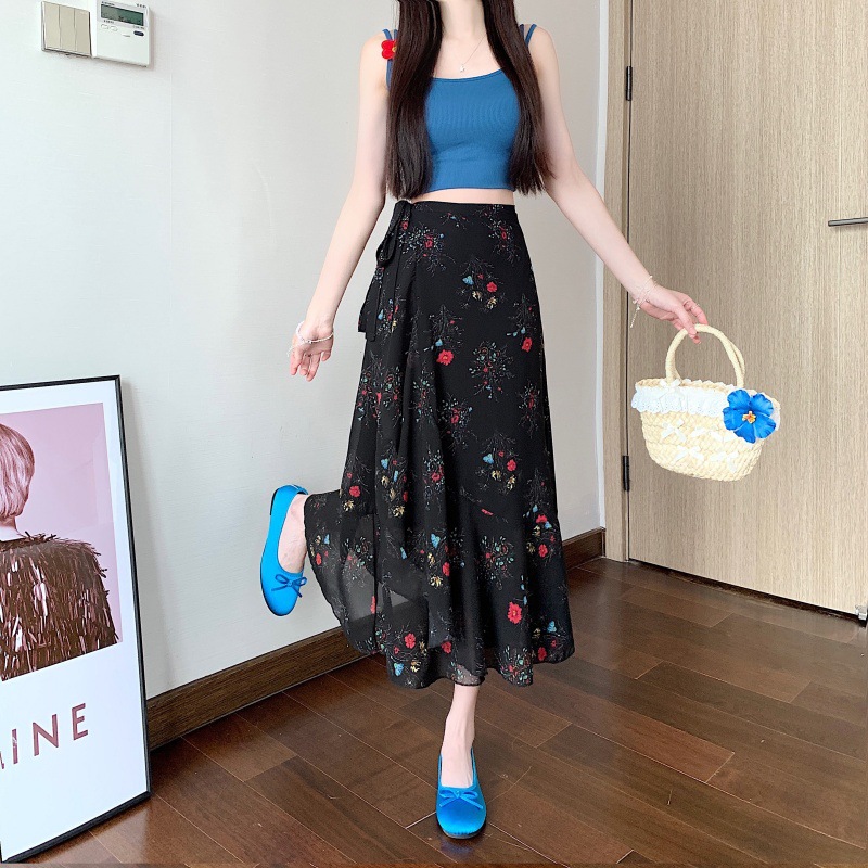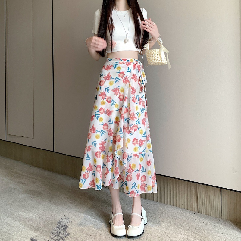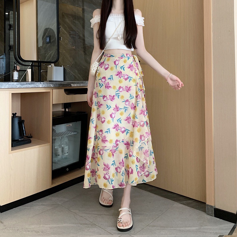 ChicShe Feiyuan Multiple Colors Ruffled Chiffon One-Piece Apron Sun Protection Fairy Mid-Length Skirt