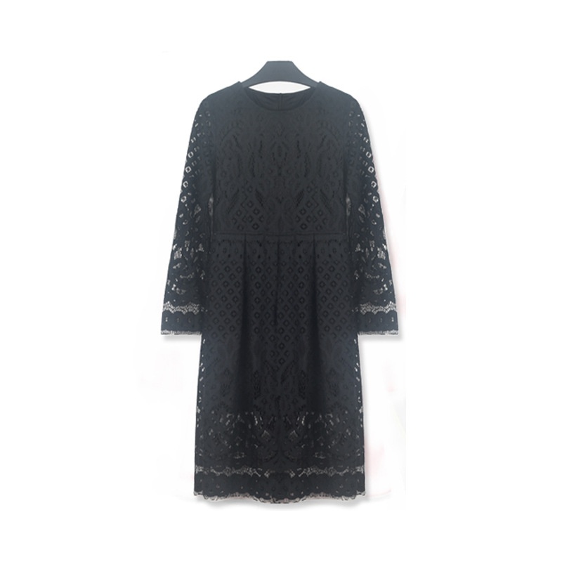 Brand:TAOYIZHUAI/Taoyi Lao,Item Number:14-14003,Pattern:Geometric Pattern,Trendy Elements:Lace,Craftsmanship:Openwork,Year/Season of Release:Autumn 2022,Fabric Name:Lace Trim,Color:Black,Size 1:L, XL, 2XL, 3XL, 4XL, 5XL,Style Type:Elegant Commuter,Skirt Style:A-line Dress,Collar Style:Round Neck,Style:Urban style, British style, elegant style, commuting style,Suitable age group:adult,Cross-border Style Type:Elegant and graceful,Skirt Length:Mid-length Dress,Sleeve Style:Regular Sleeve,Sleeve Length:Long Sleeve,Is it cross-border sourcing?:yes,Gender:Female,Main Downstream Sales Regions 1:European and American,Size:L,XL,XXL,XXXL, Extra Large XXXL, One Size, Plus Size,Main downstream sales regions 2:Middle East