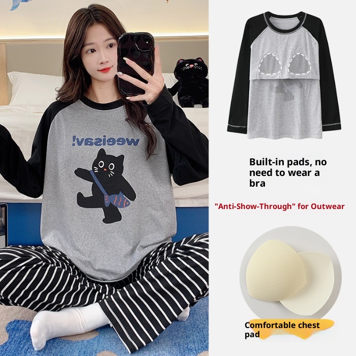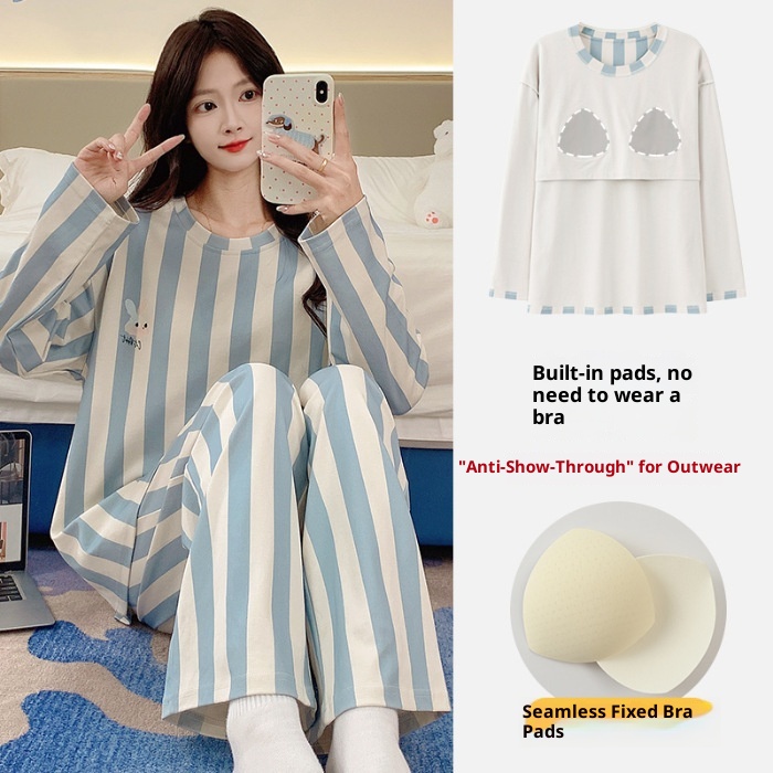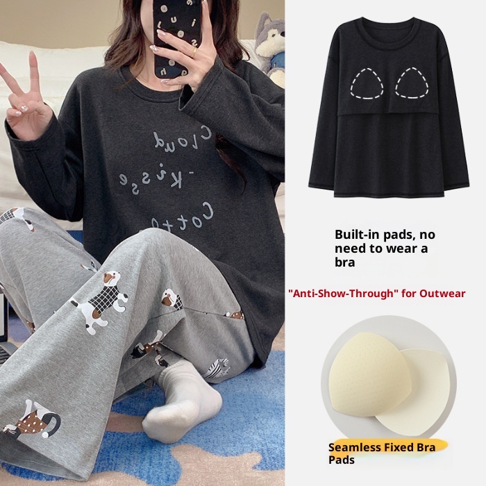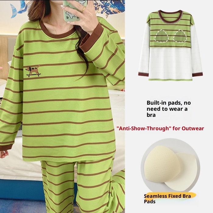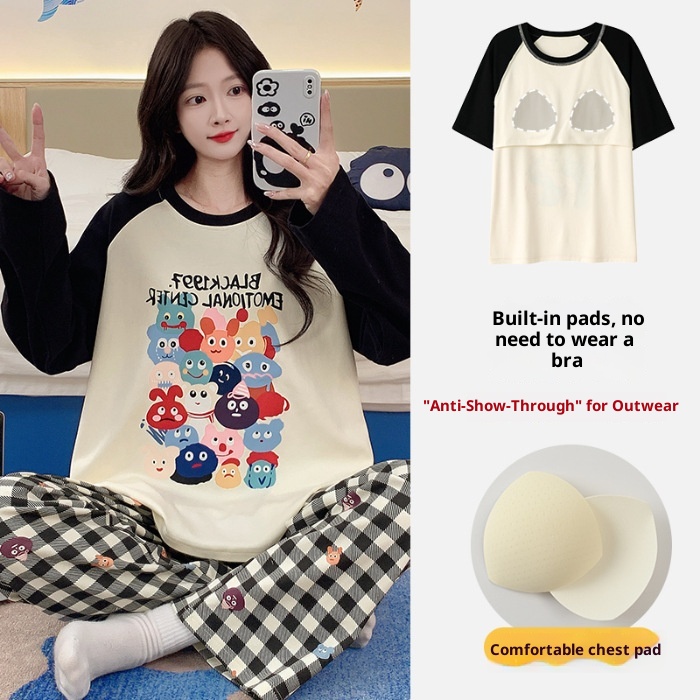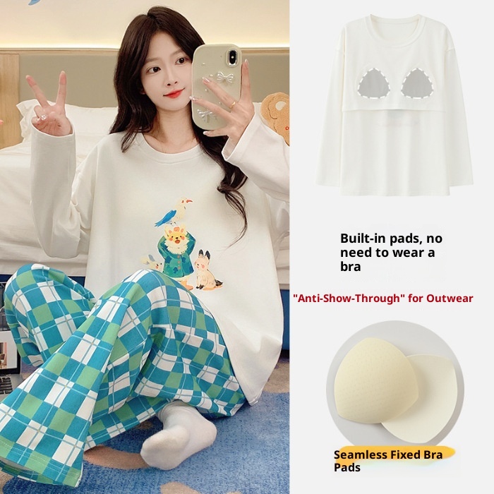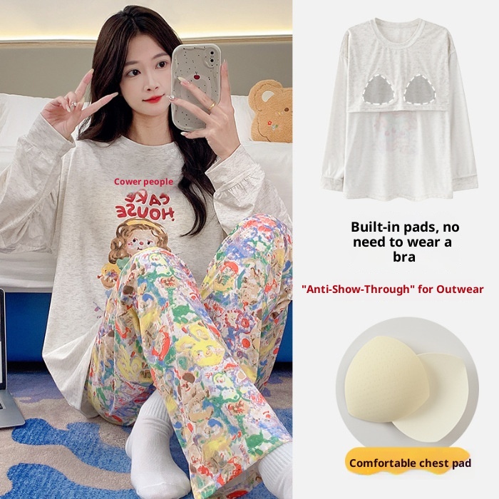 ChicShe Source Factory Stretch Cotton-Like Long-Sleeve Pajamas With Chest Pads Girls, Cartoon Round Neck, Suitable For Spring
