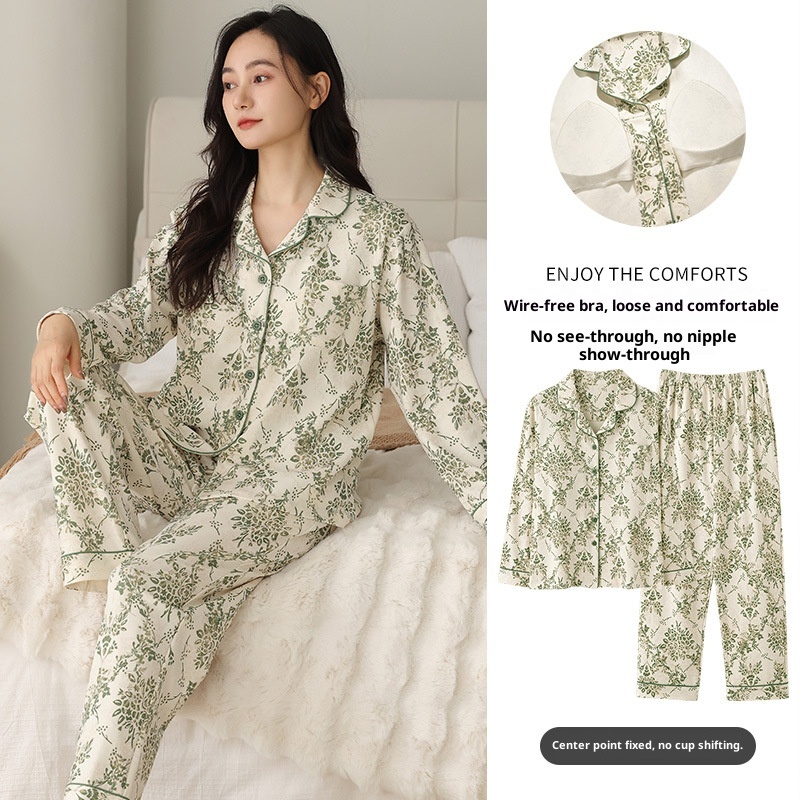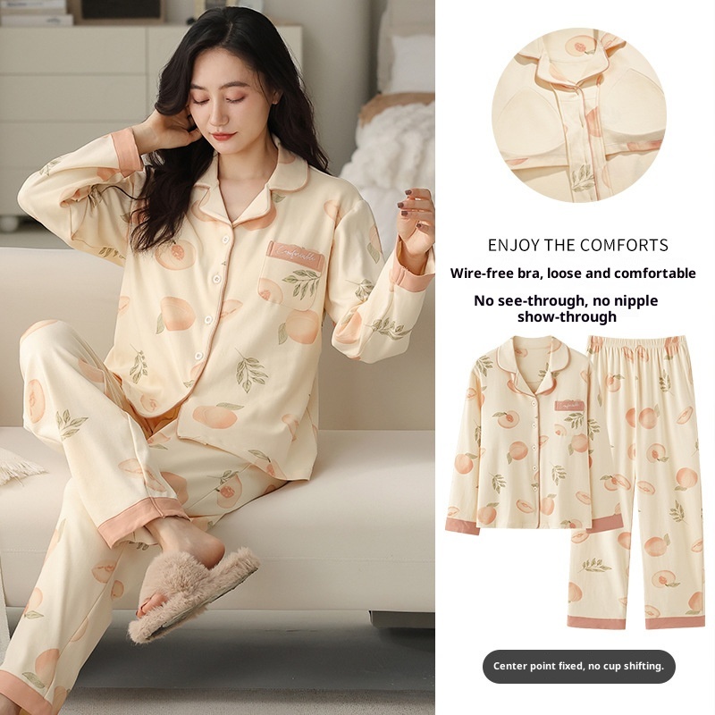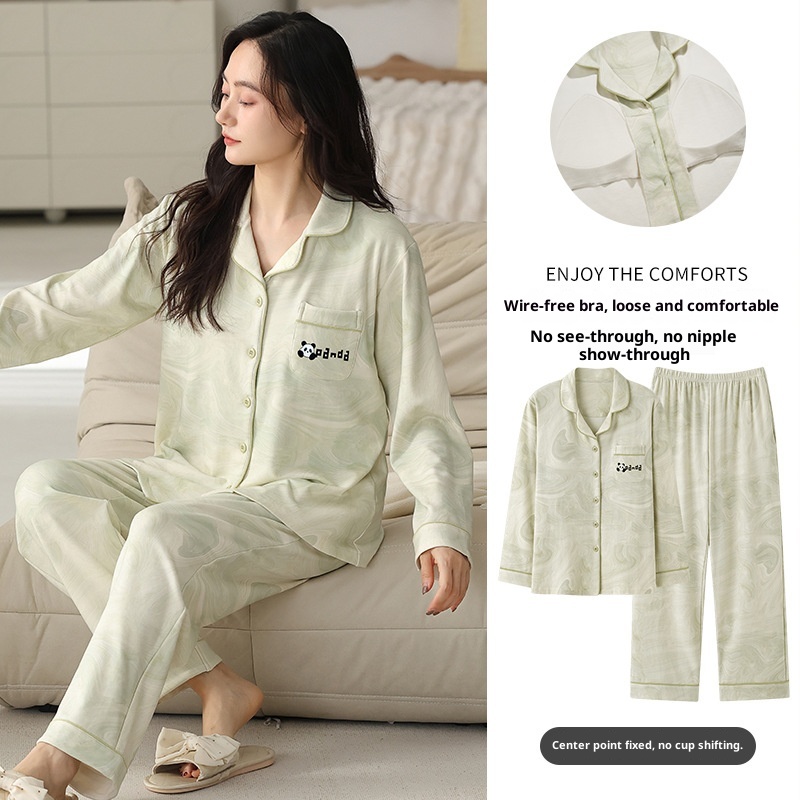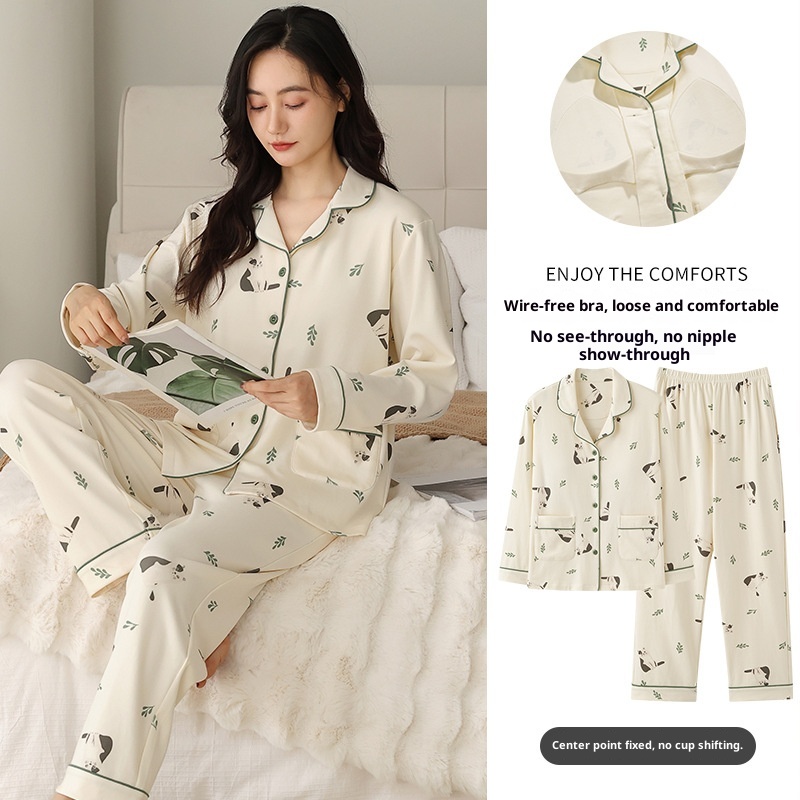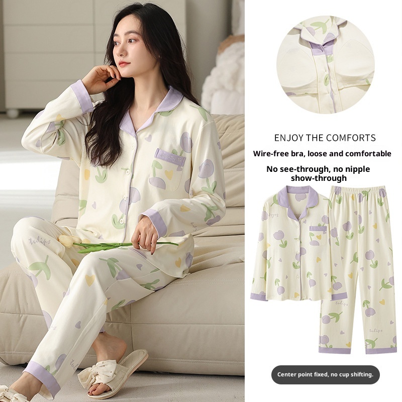 ChicShe Women's Padded Sleepwear Long Sleeve Pure Cotton Turn-Down Collar Cardigan Autumn Winter Anti-Bump Design Wearable