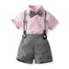 New children's clothing 2022 summer boys striped collar short sleeved cotton shirt children's shoulder strap shorts British two-piece set