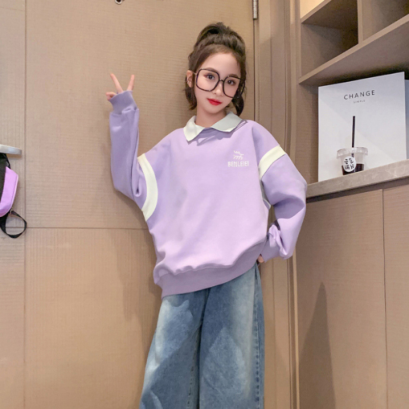 Children's clothing for girls in autumn 2024 new item, Zhongda children's fashionable baseball jacket, autumn children's Polo collar sweatshirt jacket for women