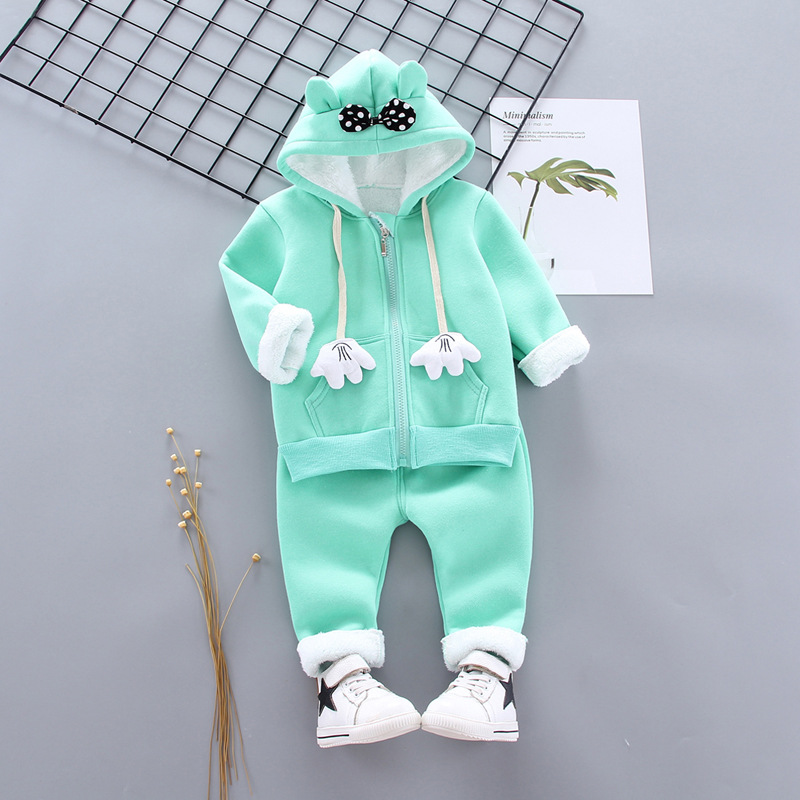 Children's clothing set for boys and girls, plush and thickened autumn and winter 2023 new style with hat, western-style children's hoodie two-piece set