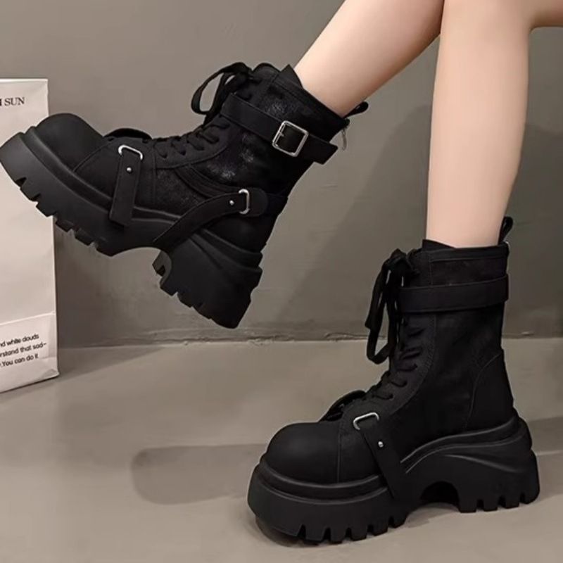 Chunky-Soled Women's Martin Boots Fall/Winter 2025 New Height-Enhancing Work Boots Solid Yellow Boots