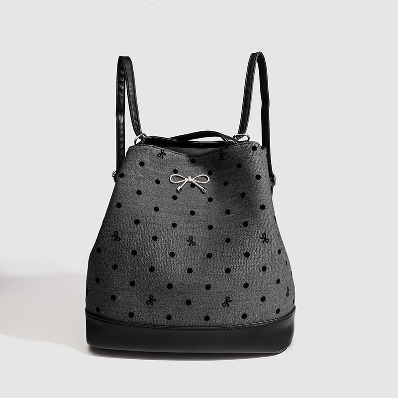 Commuting Large Capacity Student Tote Bag 2025 New Polka Dot Bowknot Backpack Niche Shoulder Handbag
