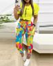 Women's Two-piece Short Sleeved Commuting Printed Drawstring Pants Set