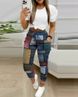 Women's two-piece short sleeved commuting printed drawstring pants set