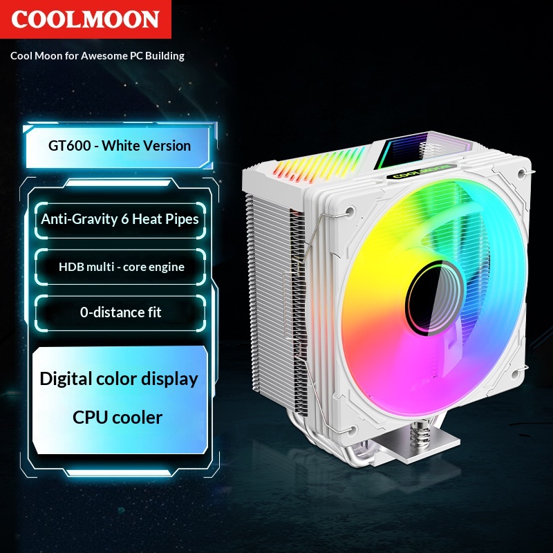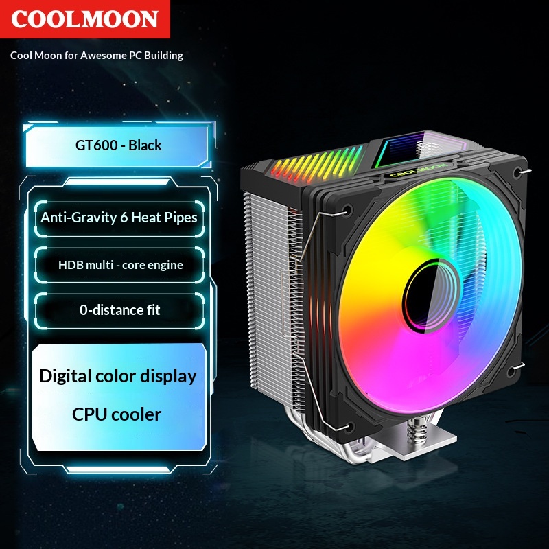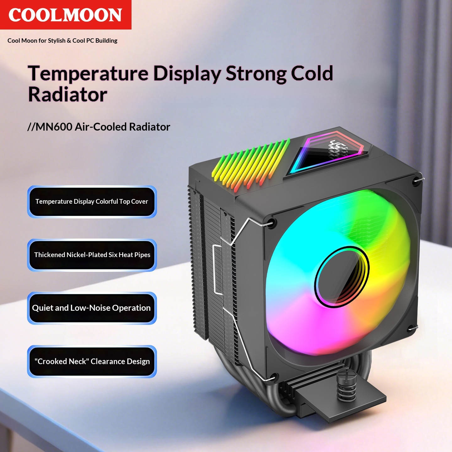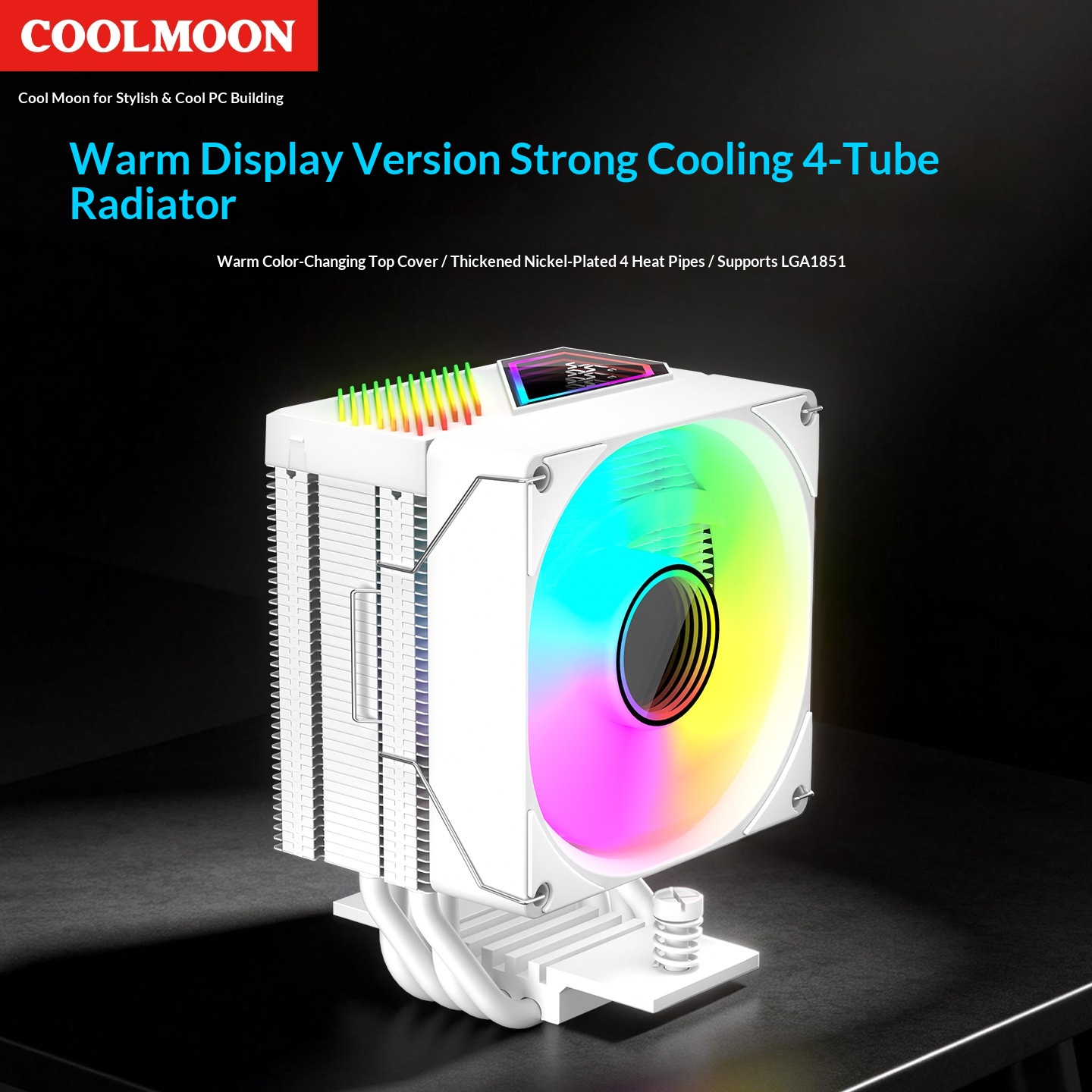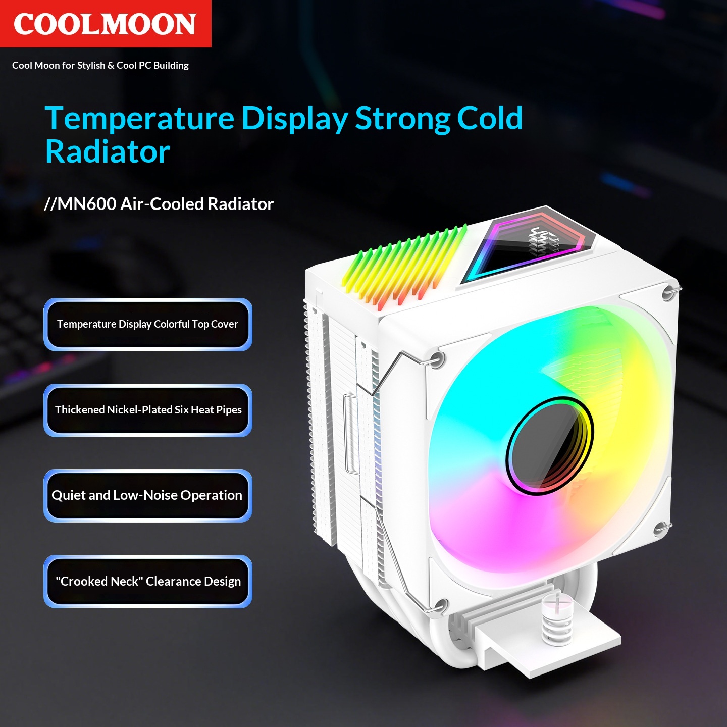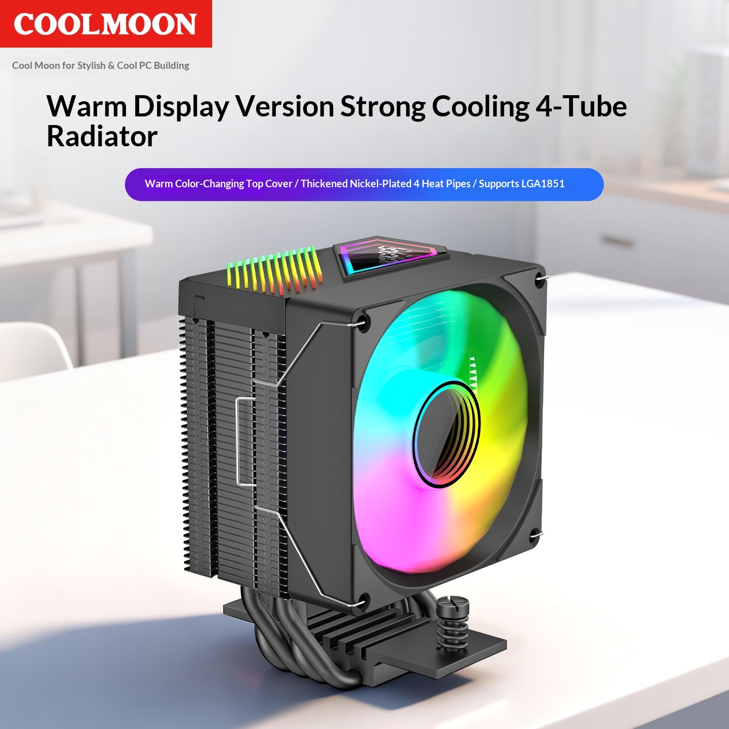 Coolmoon Computer Digital 4 Copper Tube Radiator ARGB Synchronized Temperature Display Multi-Platform AMD Tower CPU Fan