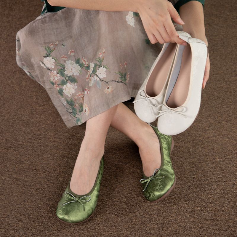 Cowhide For Women, Artistic Embossed Texture, Shallow Mouth, Sole, Soft Surface, New Chinese Style Women's Shoes