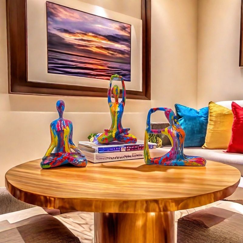 Creative Water Transfer Printing Abstract Colorful Yoga Figure Decoration High-End Luxury Decoration Home Table Decoration Crafts