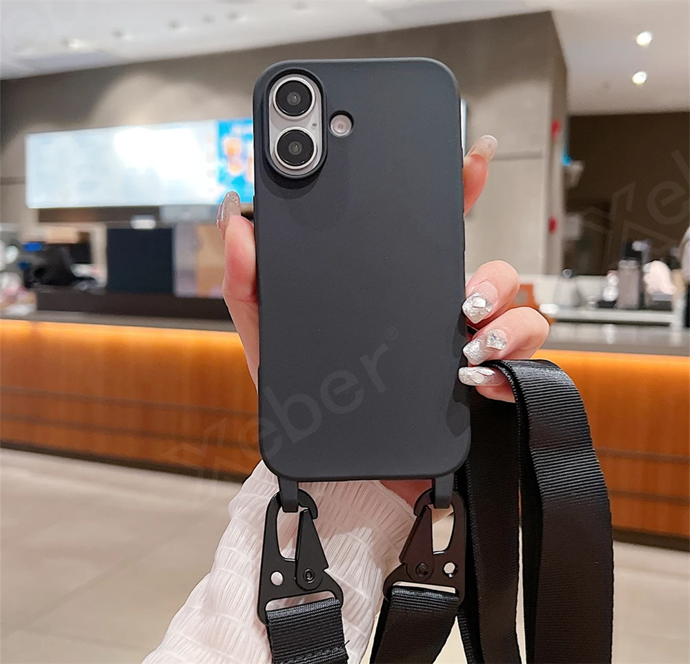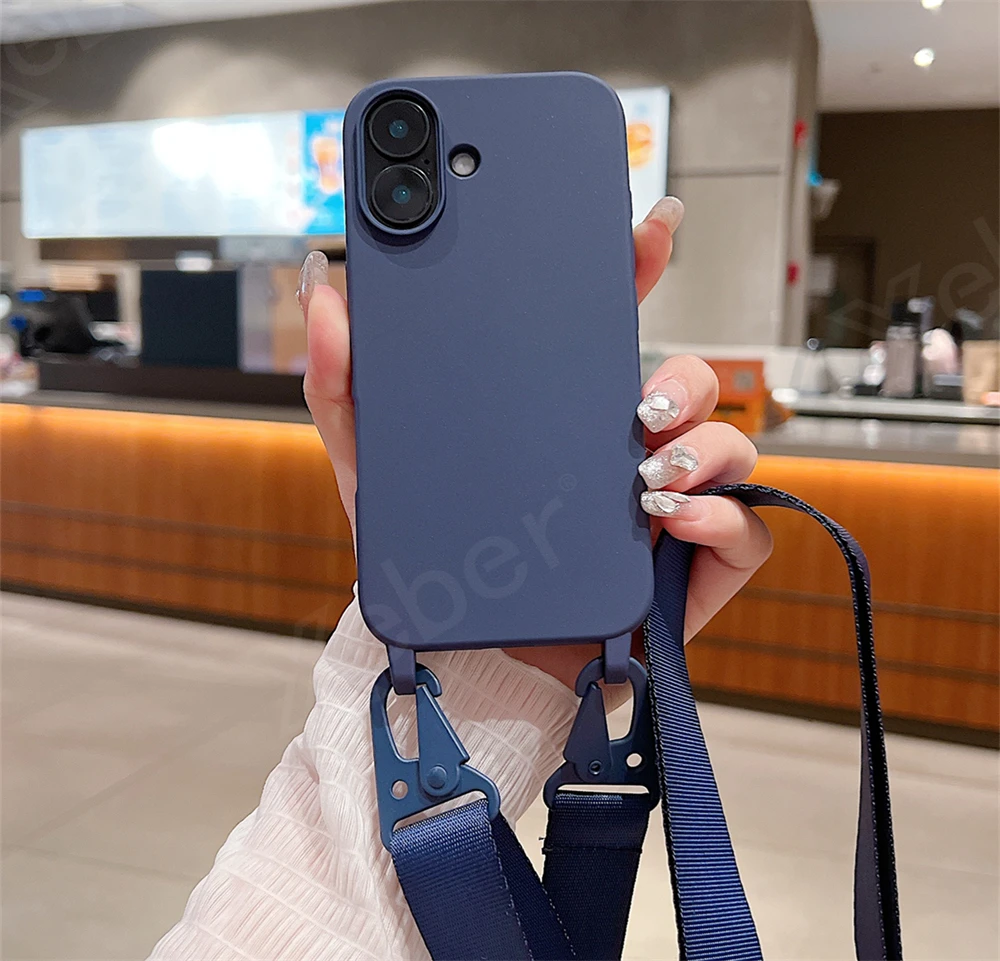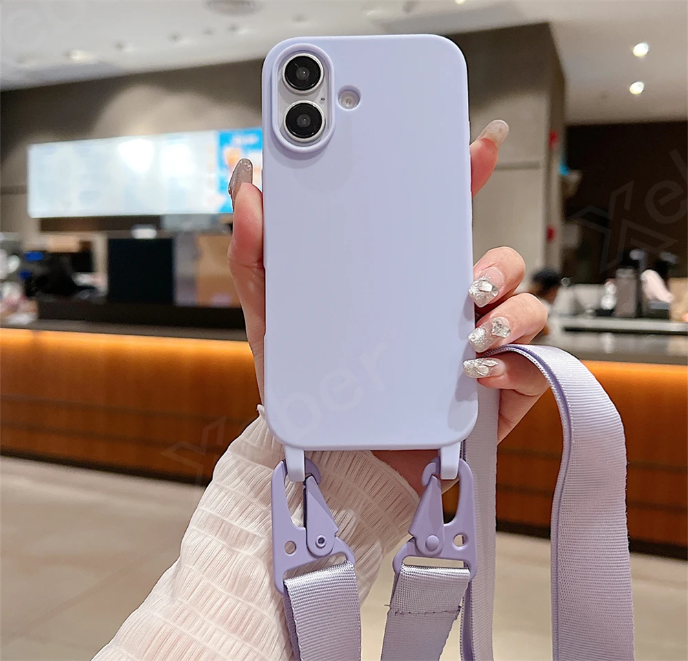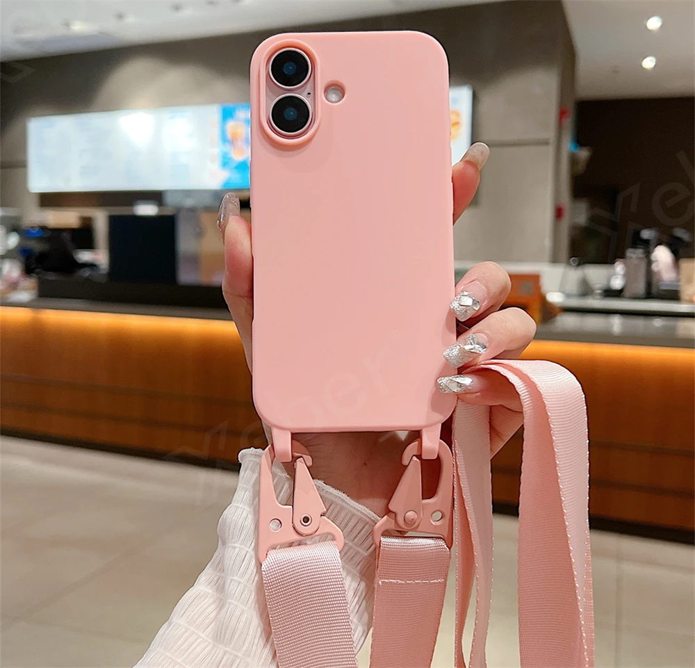 Crossbody Necklace Lanyard Cord Soft Silicone Phone Case For iPhone 16 15 13 11 12 14 Pro Max XS XR X 7 8 Plus Shockproof Cover