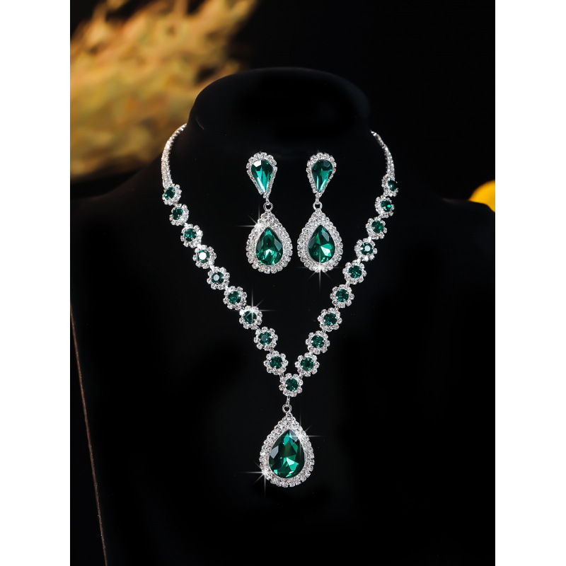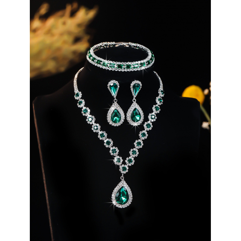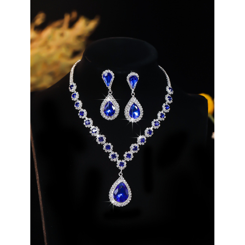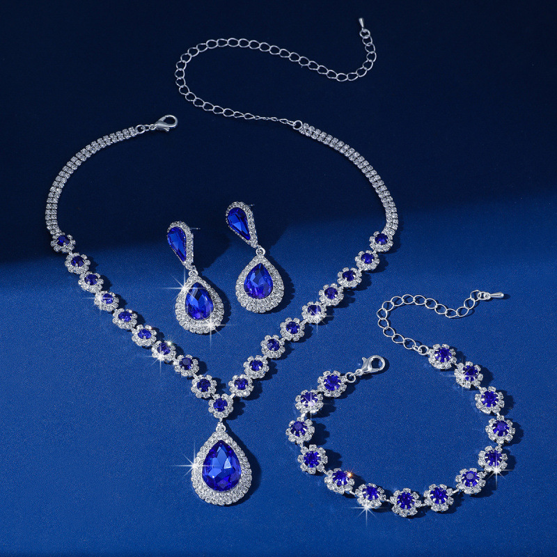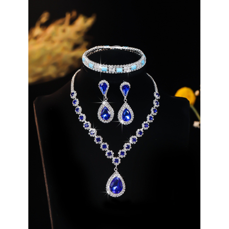 hot selling white, blue, green and red water drop crystal necklace earrings set jewelry 4 piece set