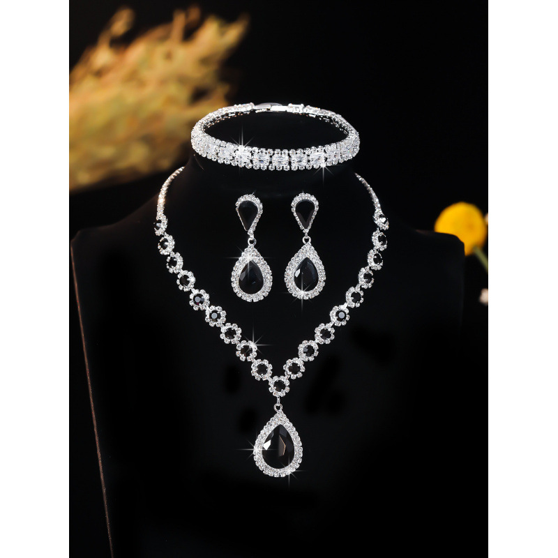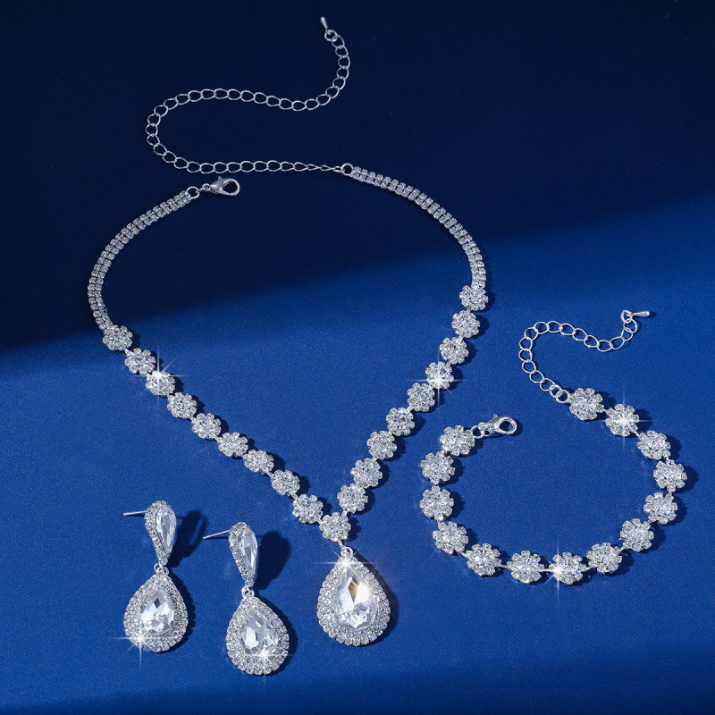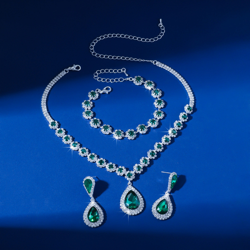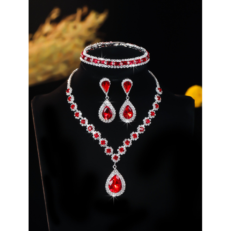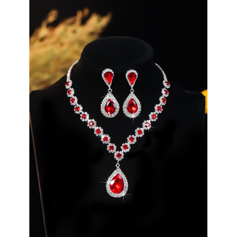 hot selling white, blue, green and red water drop crystal necklace earrings set jewelry 4 piece set