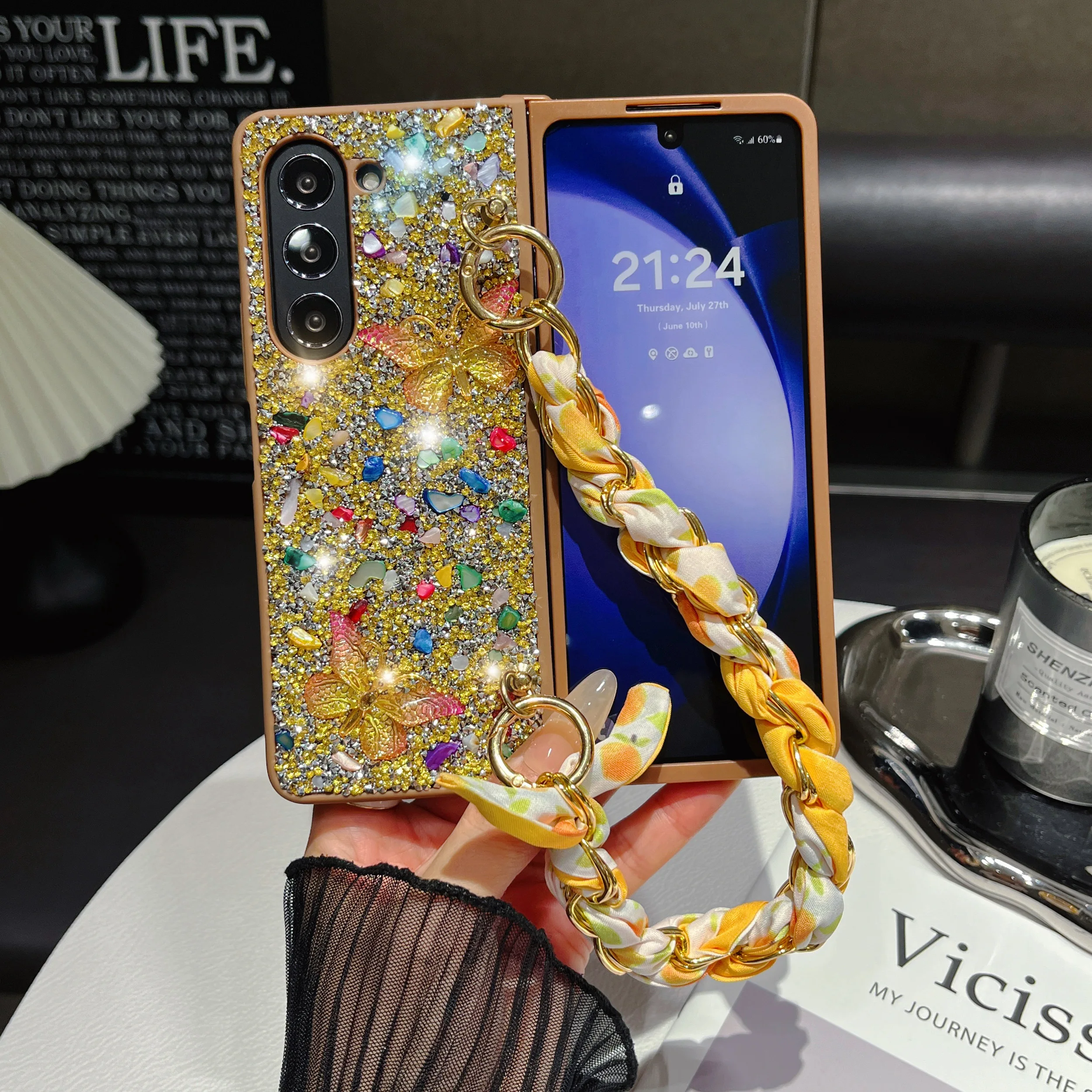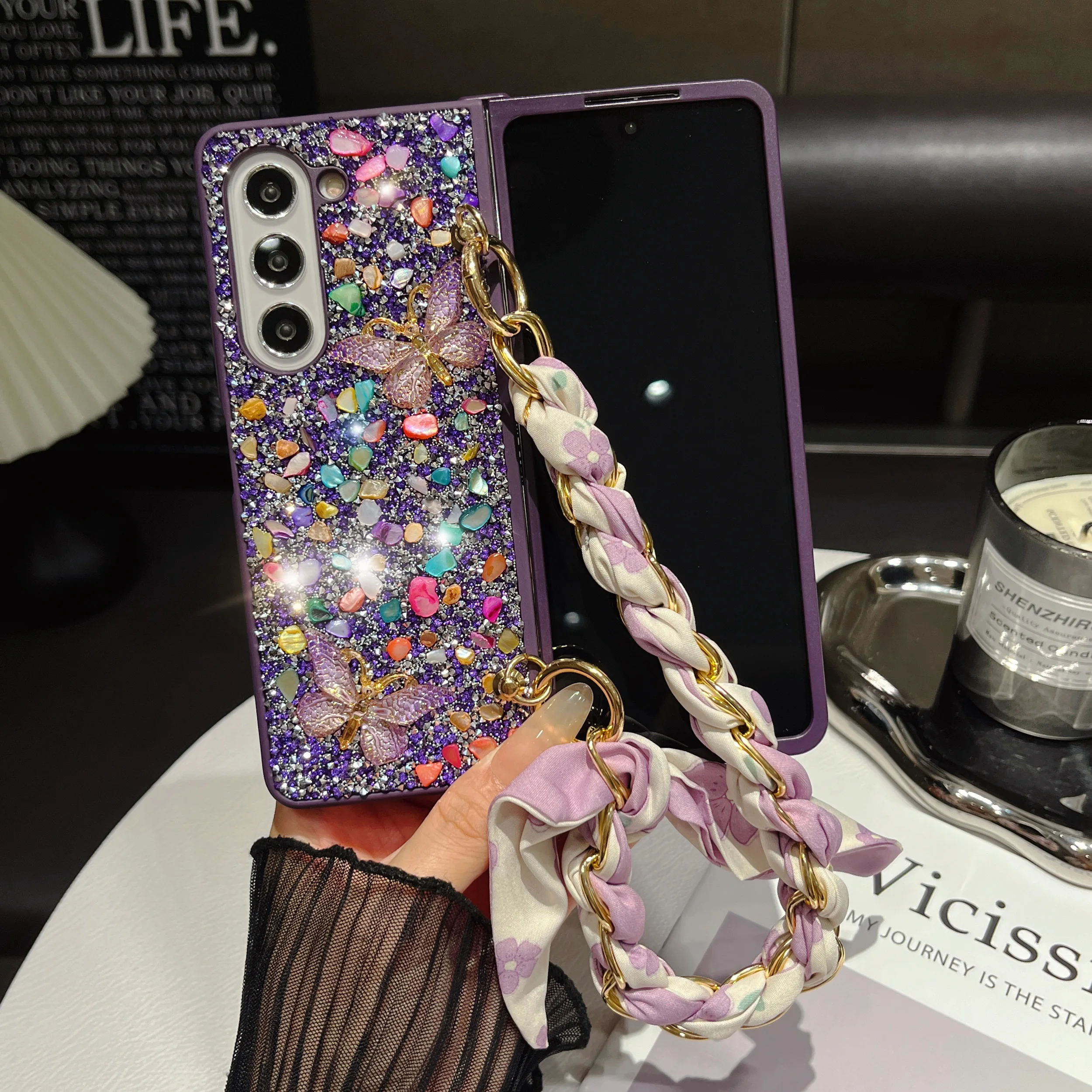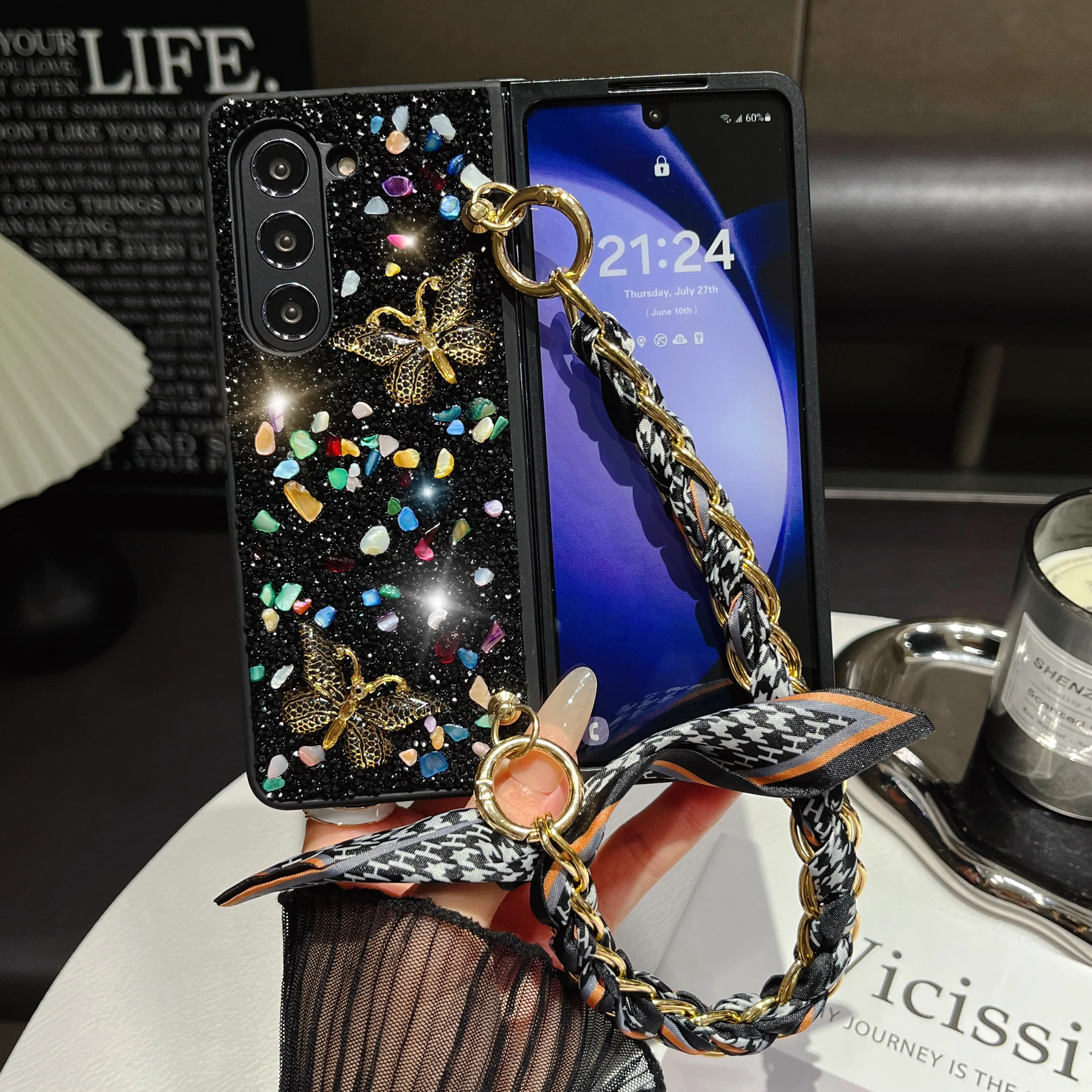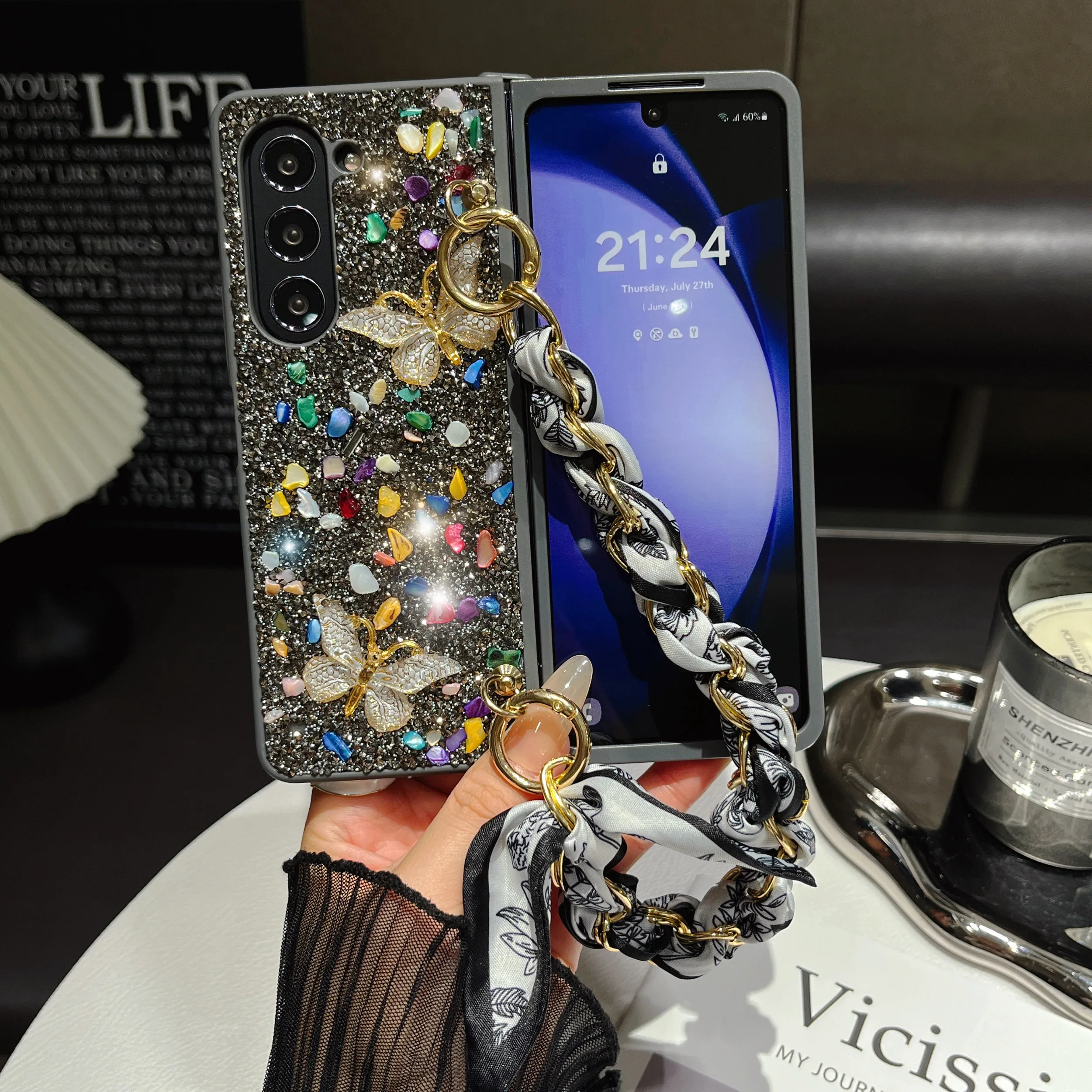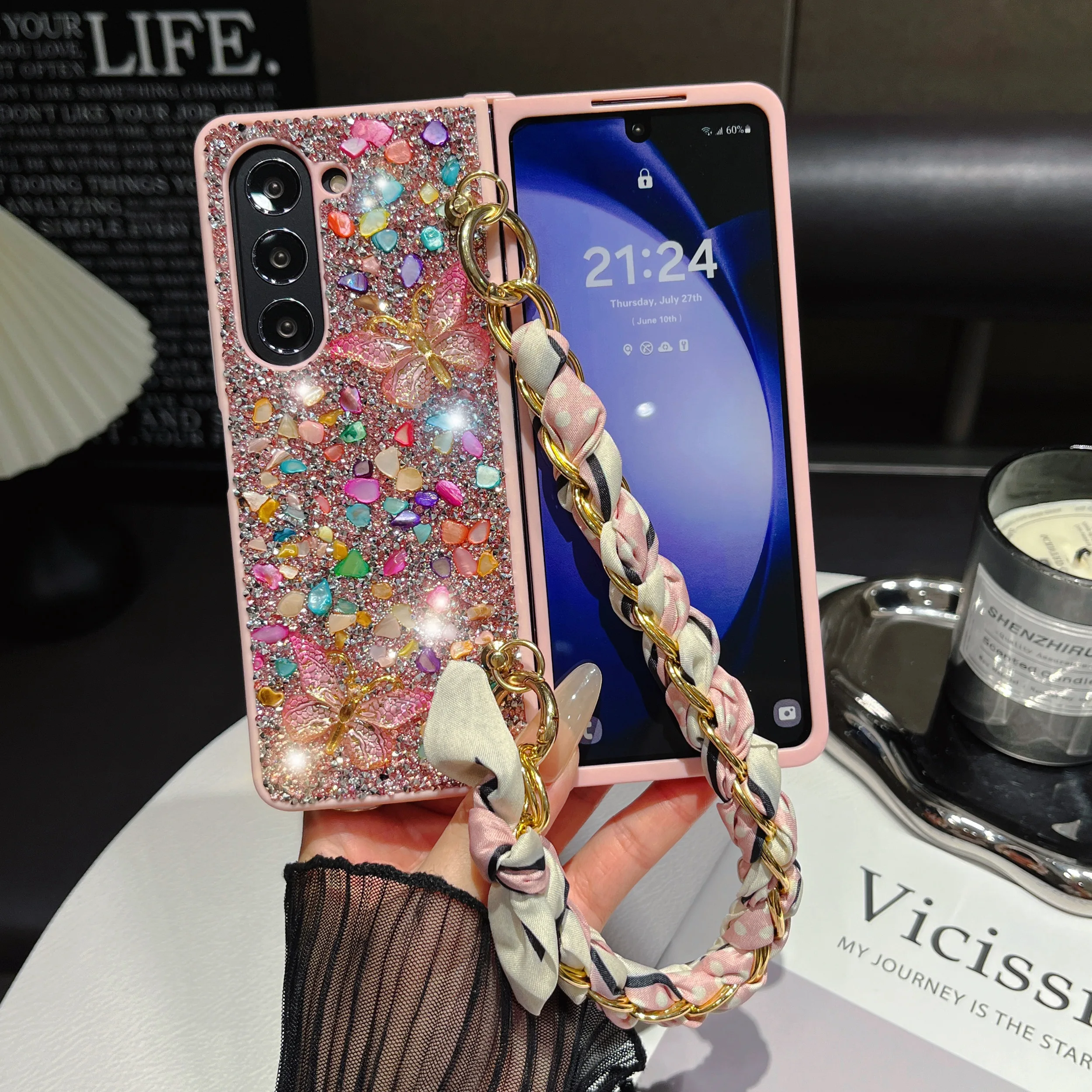 Cute Girl Colorful Butterfly Stone Diamond Glitter Phone Case Cover For Samsung Galaxy Z Fold 3 4 5 6