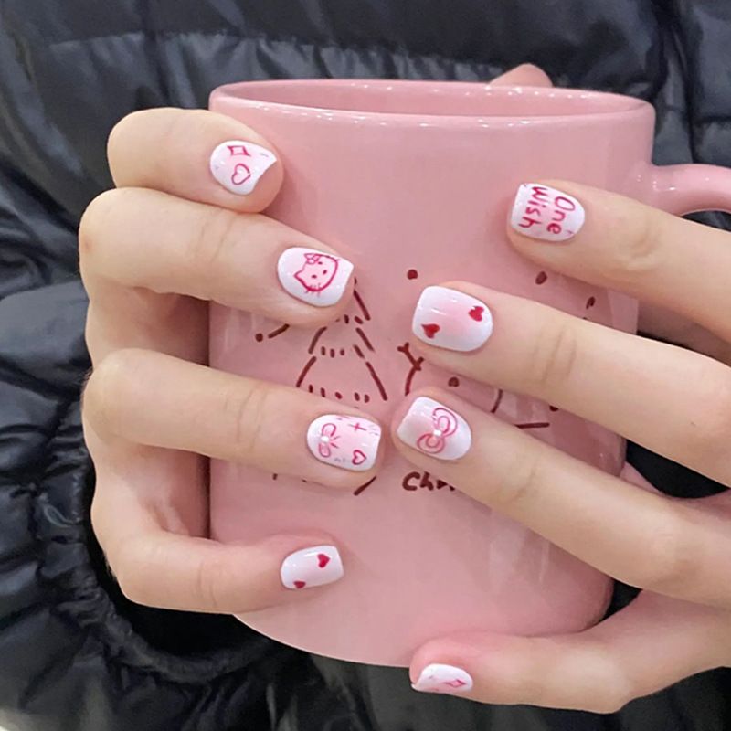 Cute Student Sticker Powder Love Little Rabbit Wearing Finished False Nail Patch