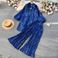 Women's fashion personality printing suit female lazy irregular lantern sleeve shirt + pleated wide-leg pants