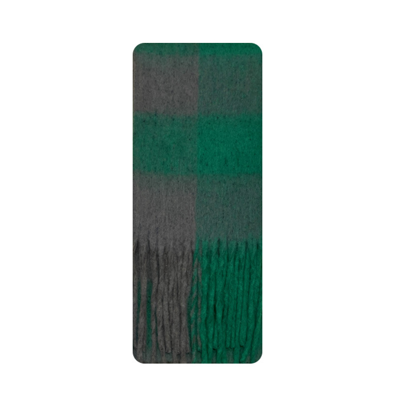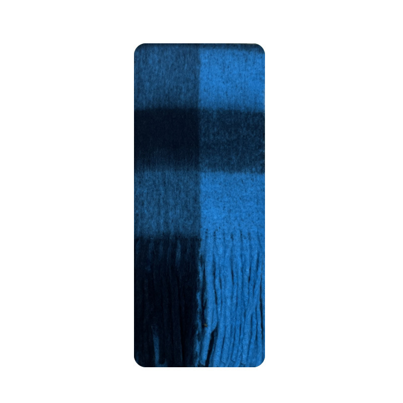Korean niche designer's extended tassel chessboard plaid imitation cashmere scarf for women's winter atmosphere feeling scarf
